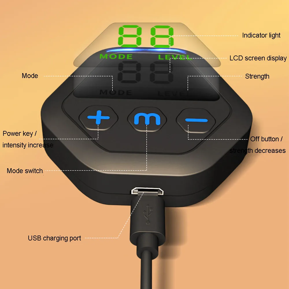 L Несколько режимов и уровней интенсивности-Доступно 10 режимов и 20 интенсивностей, которые помогут мышечному росту и сжиганию жира. Чтобы избежать резкой стимуляции, вы можете начать с режима разогрева на мягком уровне интенсивности, а затем выбрать правильный режим при удобном