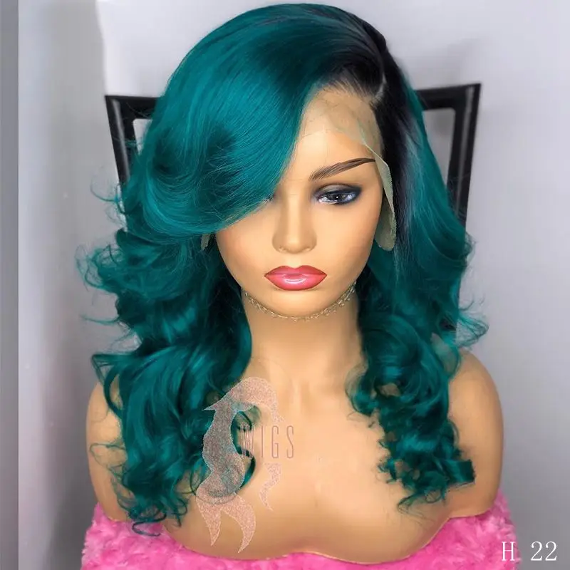 Парики из натуральных бразильских волос, Плотность парики с детскими волосами, крупные волны, зеленые, 150%