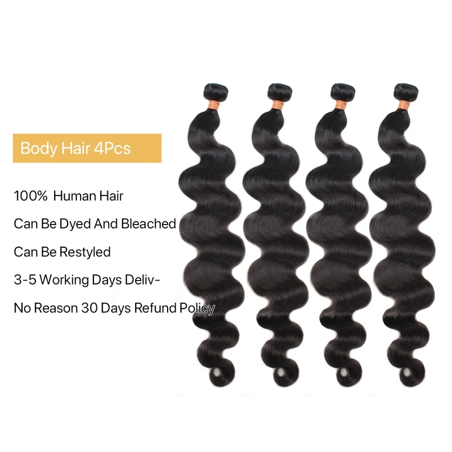 Пряди волнистых человеческих волос, бразильские натуральные черные волосы, волнистые, 4 пряди человеческих волос Реми, для чернокожих женщин