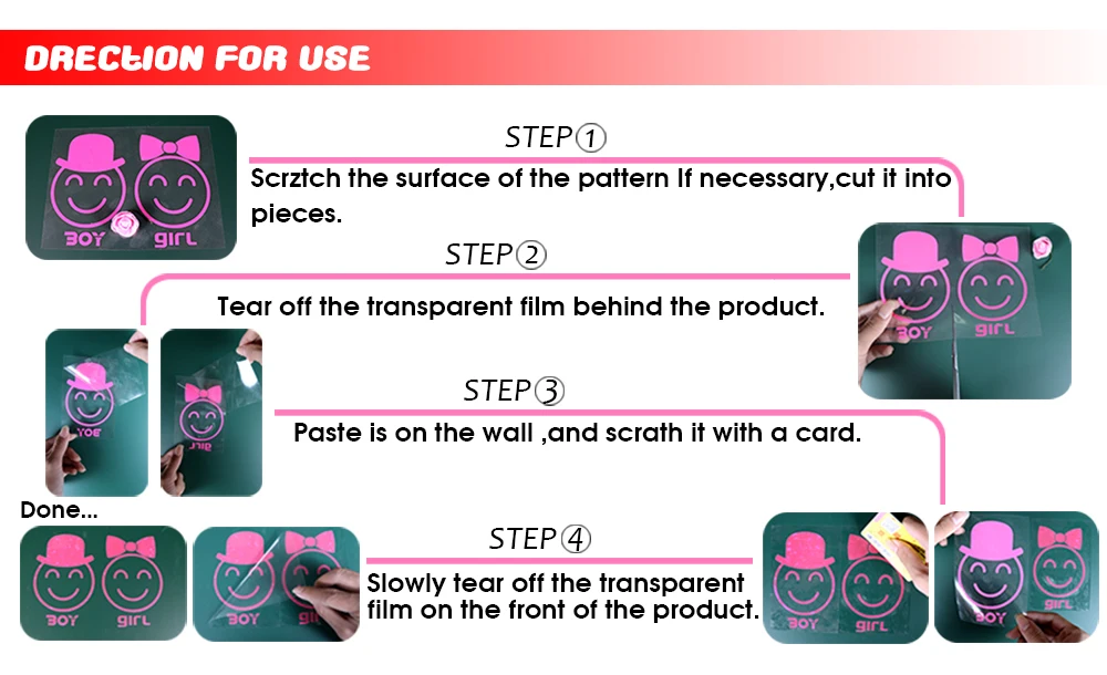 2.Наши наклейки не напечатаны, поэтому они не содержат фона, стены или поверхности, которые вы применяете, будут фоном.