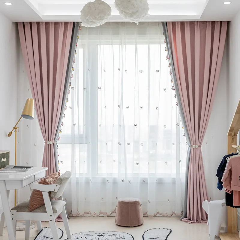 Шторы для гостиной, спальни, в скандинавском стиле, розовые, грязны...
