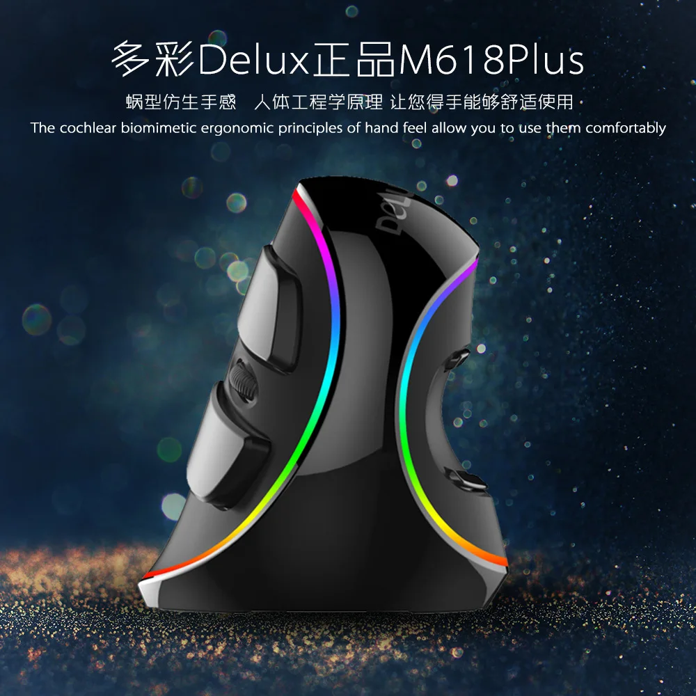 Цветная Подлинная Вертикальная мышь Delux M618Plus, беспроводнаяпроводная мышь