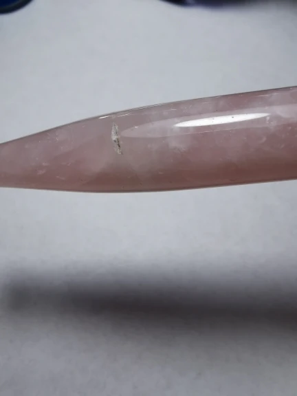 заказывала палочку из розового кварца, все как на картинке, однако качество обработки камня оставляет желать лучшего- очень много зазубрин, можно поранить лицо.Возврат делать не стала, т.к. много мороки , а цена низкая.Но лучше заплатить больше и купить качественнее.