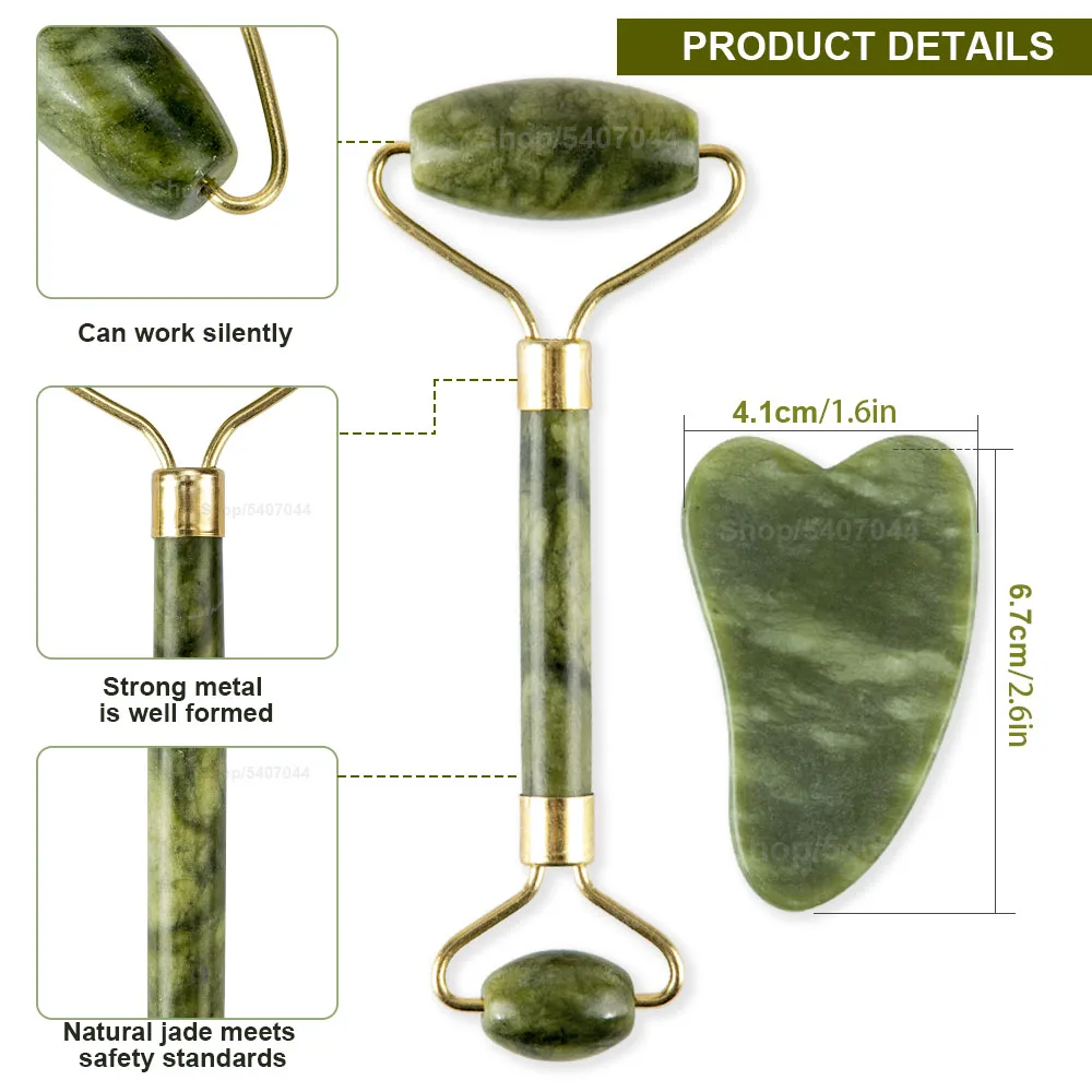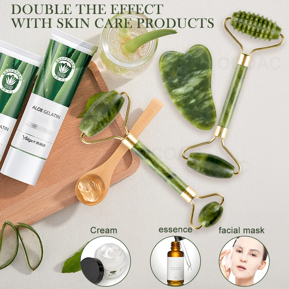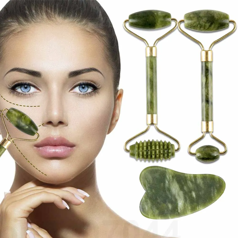2pcskit Gua Sha Massager For Face Care Jade Rollers Beauty Health Skin Scraping Chin Lifting Natural Stone Gouache Massage