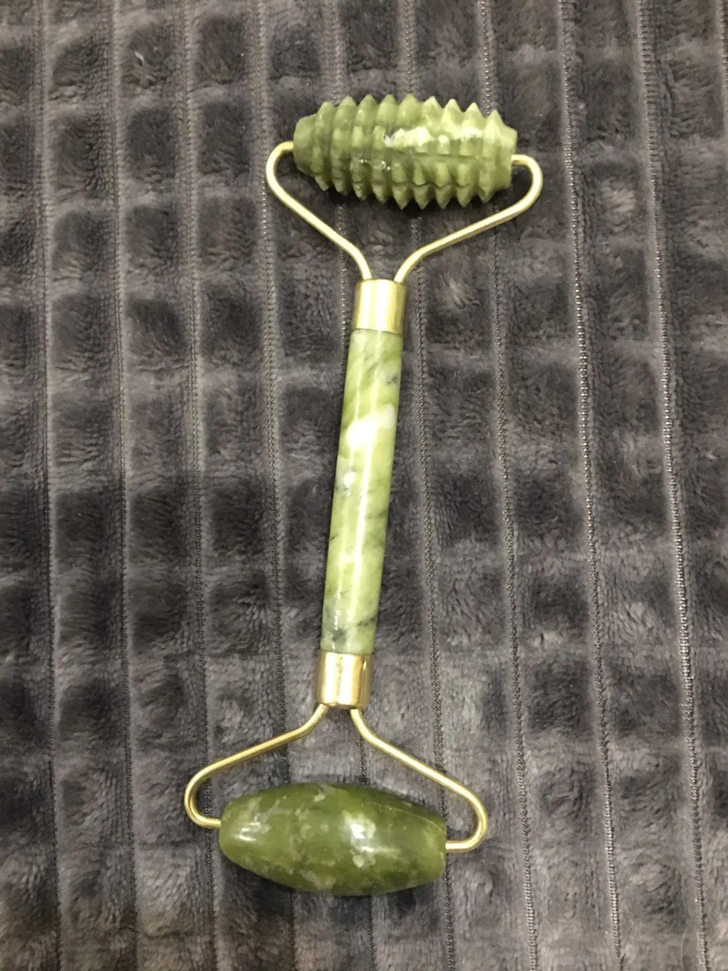 классно в руке ощущается, не стекло и не керамика, камень, холодный, имеет вес; бугристый ролик чувствительно проходится по коже, что дает хороший массажный эффект, а гладкий - скорее расслабляет.
