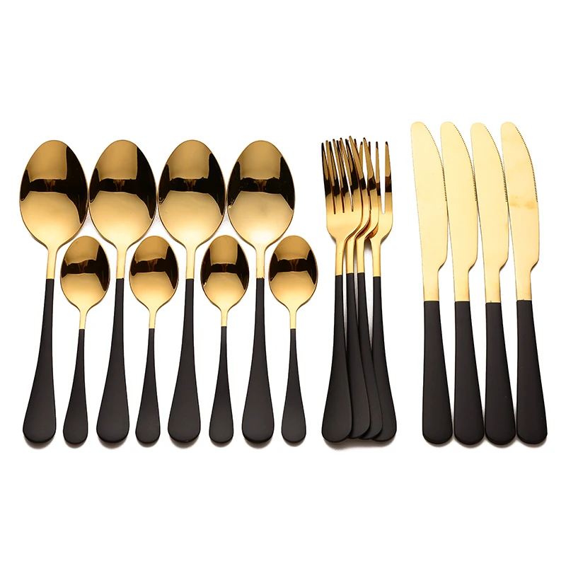 Набор столовых приборов из нержавеющей стали, 16 шт., набор золотых...