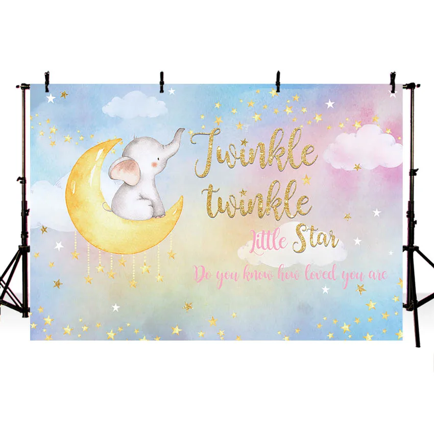 Мерцающий мерцающий маленький Звездный слон фон акварель Луна Слон детский душ фон для фотосъемки день рождения вечеринка Декор