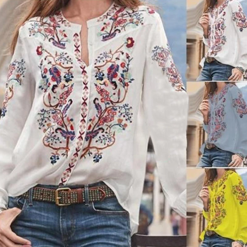 Осенняя Новинка, винтажная блуза с длинным рукавом и рубашка, Повседневная рубашка с круглым вырезом и принтом, бикини, модные топы размера плюс, женская рубашка