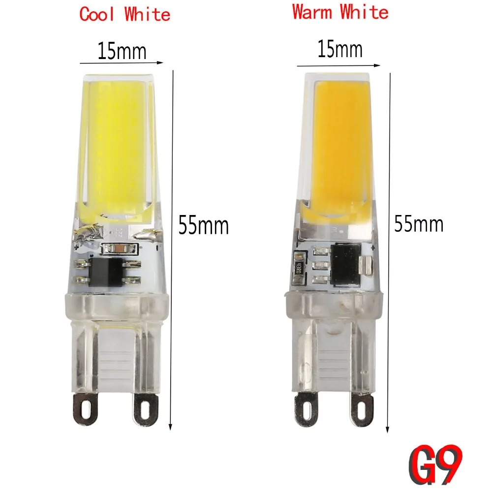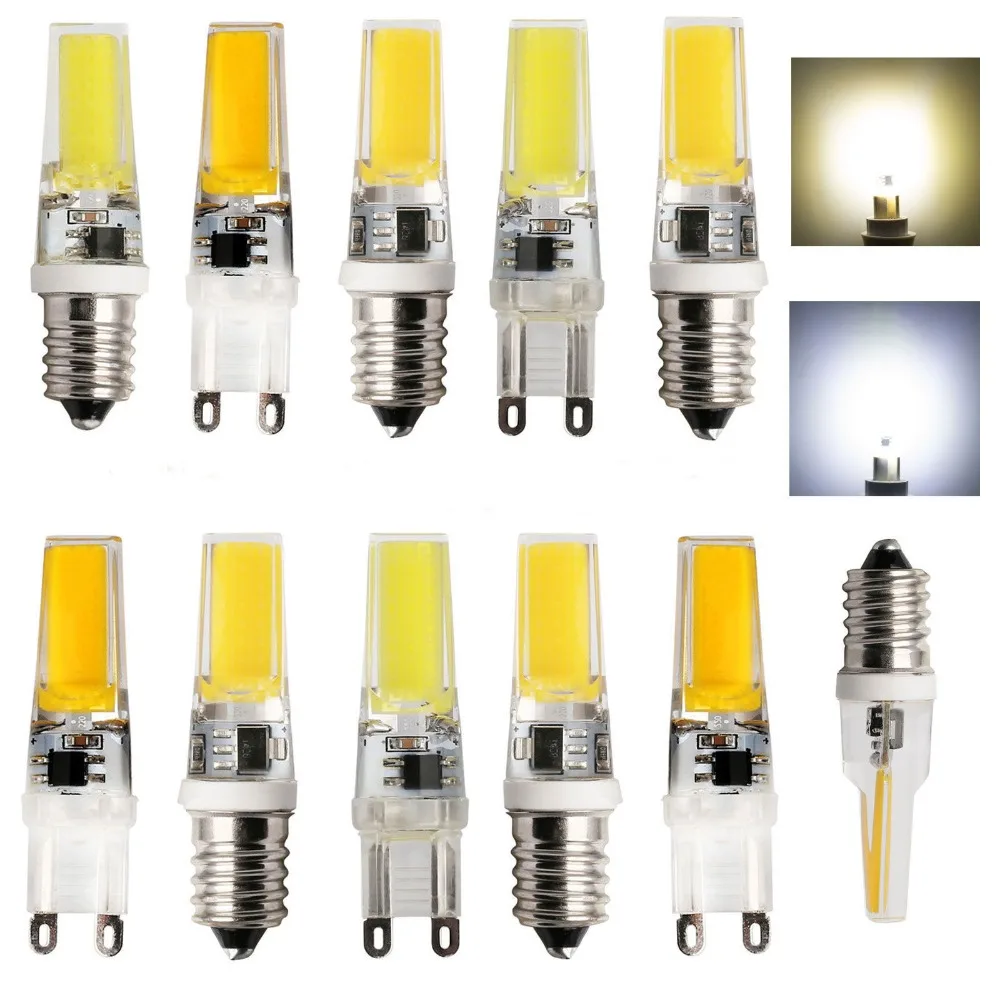Светодиодная миниатюрная приглушаемая лампочка G9 E14, силиконовые хрустальные лампы с COB матрицей, 220 В, хрустальный светильник теплого и холодного белого света, 9 Вт