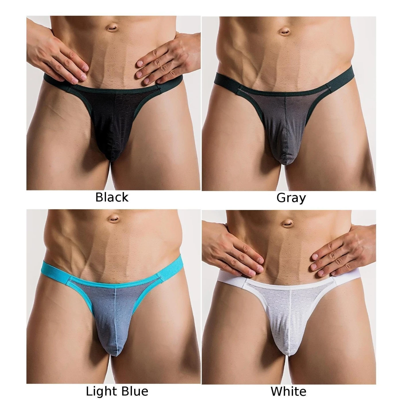 Трусы-стринги мужские, прозрачные, с низкой посадкой, дышащие, одноцветное нижнее белье