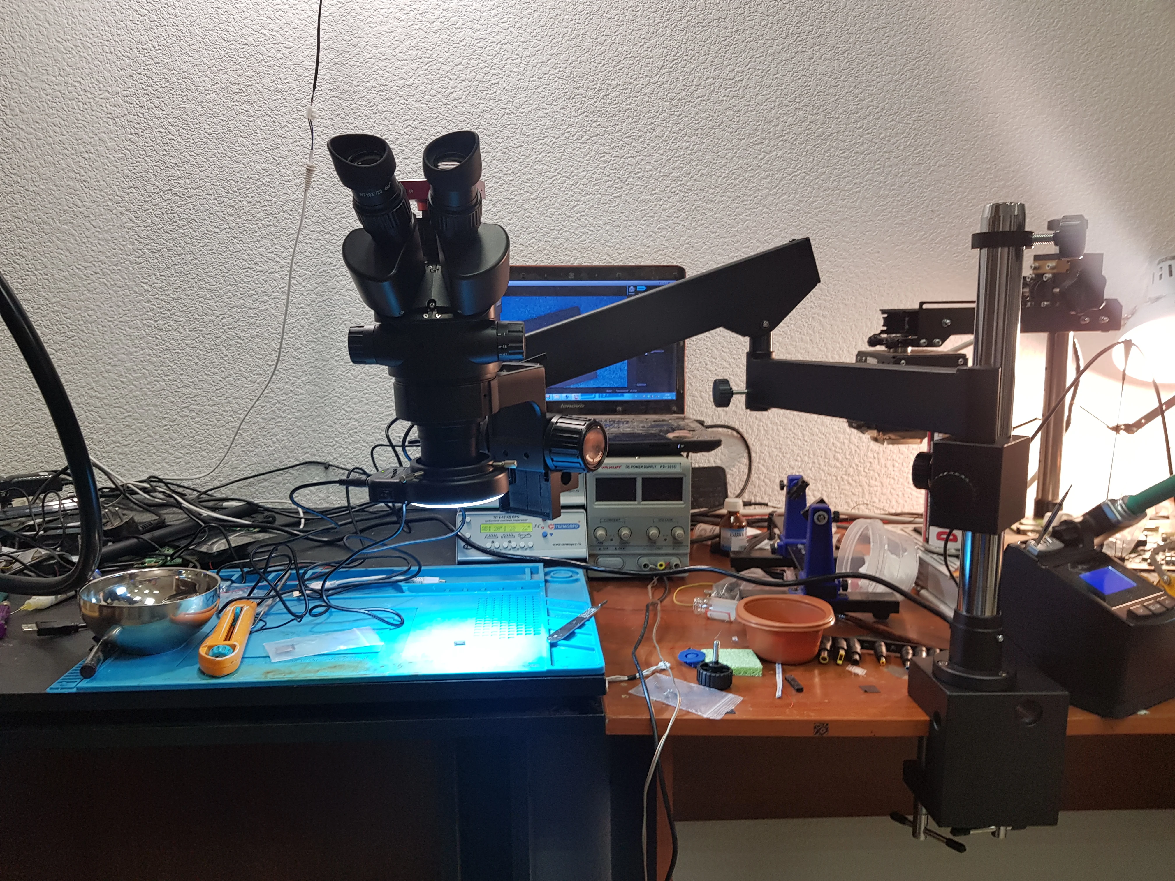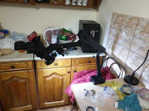 1. Штатив на удивление порадовал. Металлический и достаточно увесистый. Минусы у штатива - Фиксирующие зажимы сразу же начинают царапать штатив и микроскоп. Так же штатив немного ведёт, если фиксаторы затянуты не до конца. 2. Микроскоп. Главное его достоинство - это тринокуляр, второе - плавное увеличение. Ну и не без минусов. До него пользовался ОГМЭ П3, на нём к наглазникам можно прижаться и за счёт этого можно сосредоточиться на рассматриваемом объекте, тут же - от них надо держаться на расстоянии пары сантиметров иначе видимая область сильно уменьшается. Микроскоп хлипкий. При плавном увеличении необходимо менять фокусное расстояние - подкручивать высоту. Мне показалось жутко неудобным. Самый большой минус - это линзы. Смотришь как через сферу, лёгкий эффект рыбьего глаза. 3. Камера поставляется сразу с картой памяти 8гб и фокусировочной линзой, при правильной установке картинка перевёрнута, но в ПО можно отзеркалить