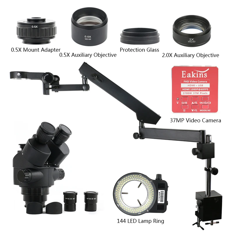 Тринокулярный микроскоп, 37 МП, 1080P, HDMI, USB, для ремонта печатных плат