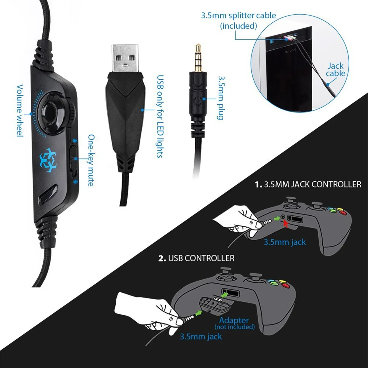 V1 игровая гарнитура стерео Бас Heaphone с микрофоном светодиодный светильник для PS4 Xbox One PC + 5000DPI 6 кнопок Pro игровые наушники