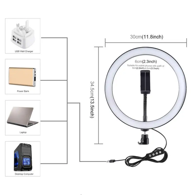5. USB-порты можно использовать с несколькими устройствами, такими как подключение к компьютеру, ноутбуку, мобильному источнику питания и USB-зарядному устройству. Вы сможете наслаждаться светодиодным кольцесветильник том в любое свободное время.