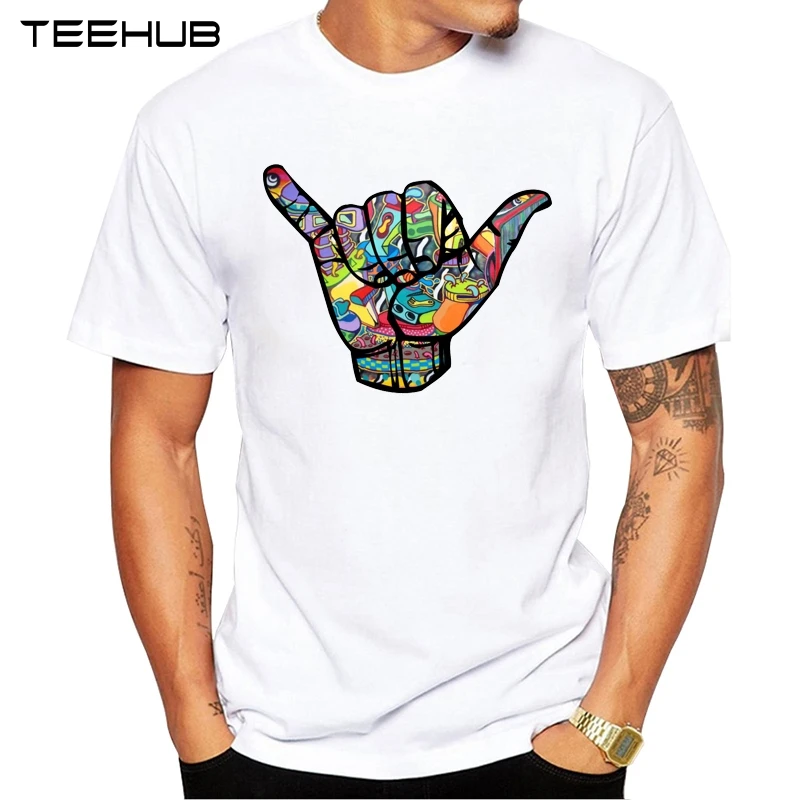 TEEHUB Мужская Новая модная подвесная свободная футболка Shaka с коротким рукавом с рисунком знака руки, хипстерские футболки