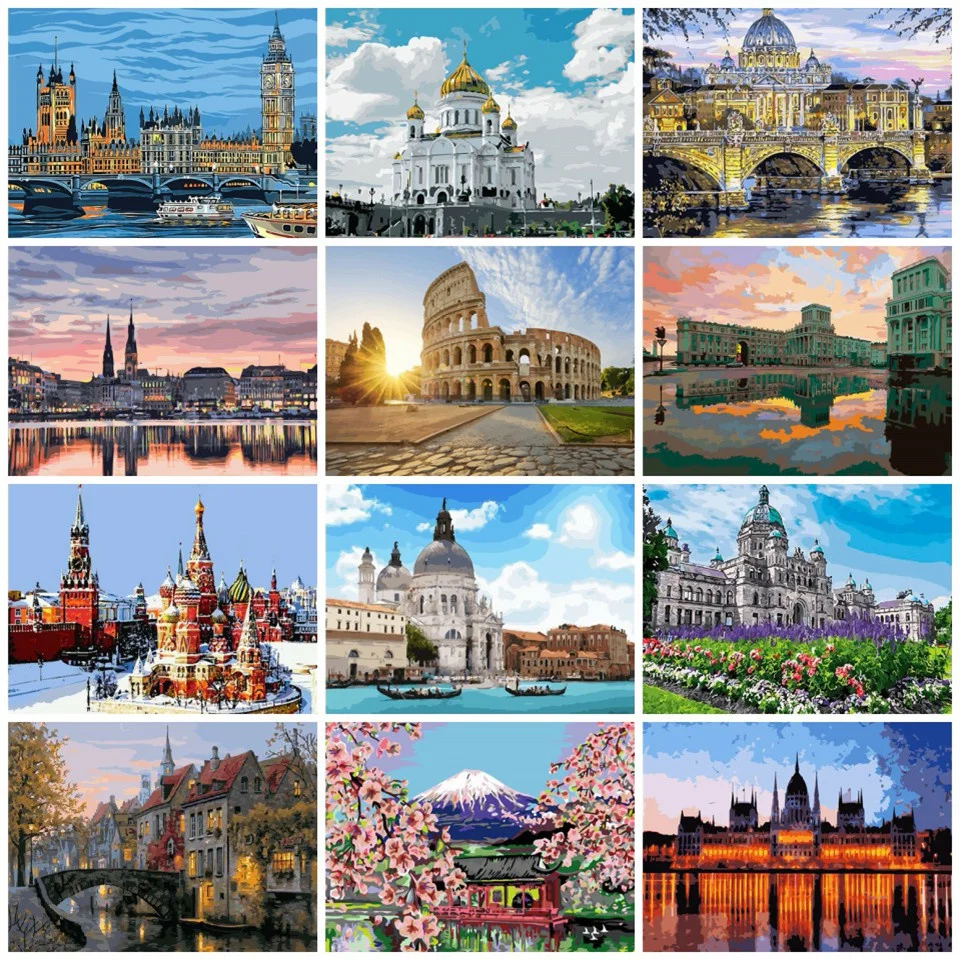 AZQSD картина маслом по номерам городской аркилик картина по номерам пейзаж Сделай Сам без рамки украшение ручная краска набор подарок
