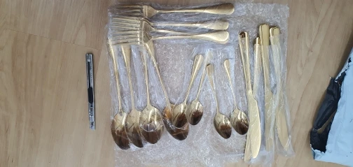 Я купил второй набор, так как мне действительно нравятся эти столовые приборы. После 6 месяцев ручной стирки золото начало очень мало соскальзывать с ложек после того, как я почистил их немного слишком сильно, но это только в том случае, если вы будете выглядеть очень внимательно.