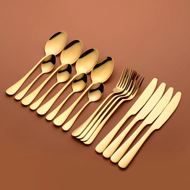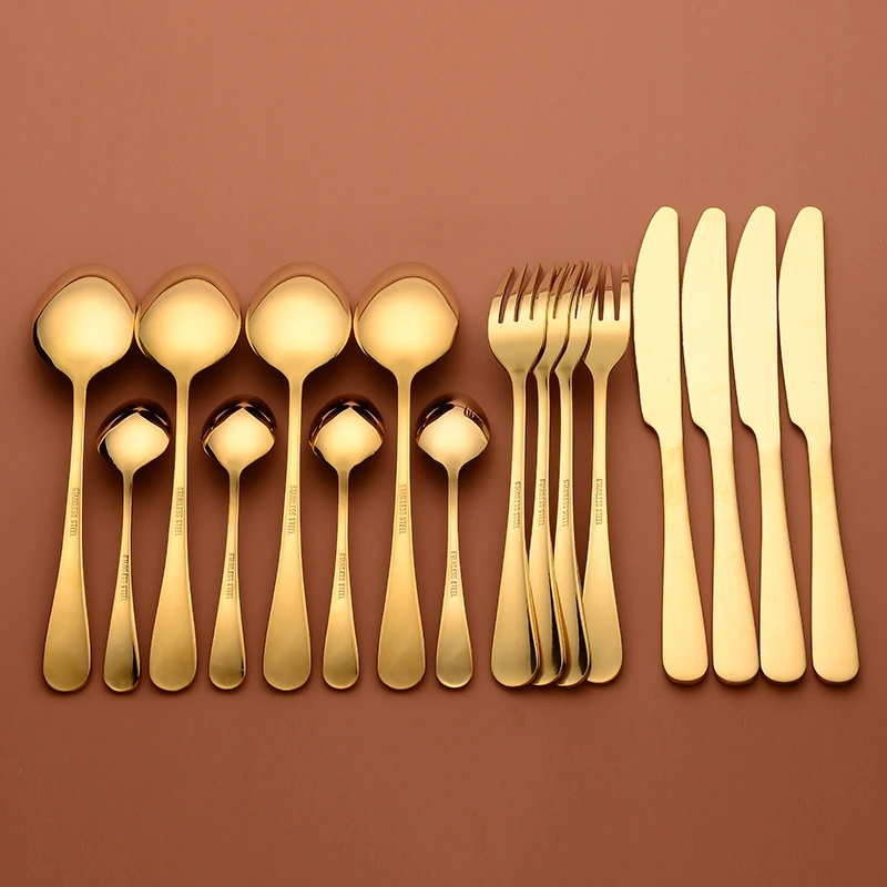 Набор золотых столовых приборов вилки, ножи, ложки из нержавеющей стали, набор столовых приборов, комплект золотистой посуды с золотой ложкой