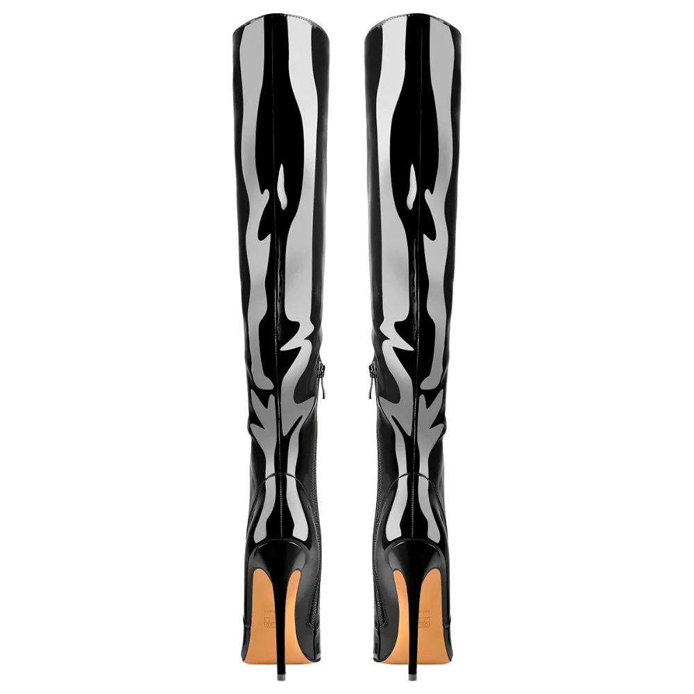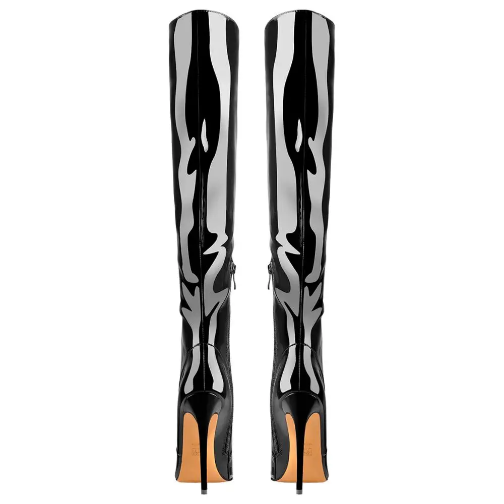 Onlymakerженские сапоги до бедра на среднем каблуке с закрытым носком на молнии; Черные классические сапоги из лакированной кожи; Большие европейские размеры 46 US15