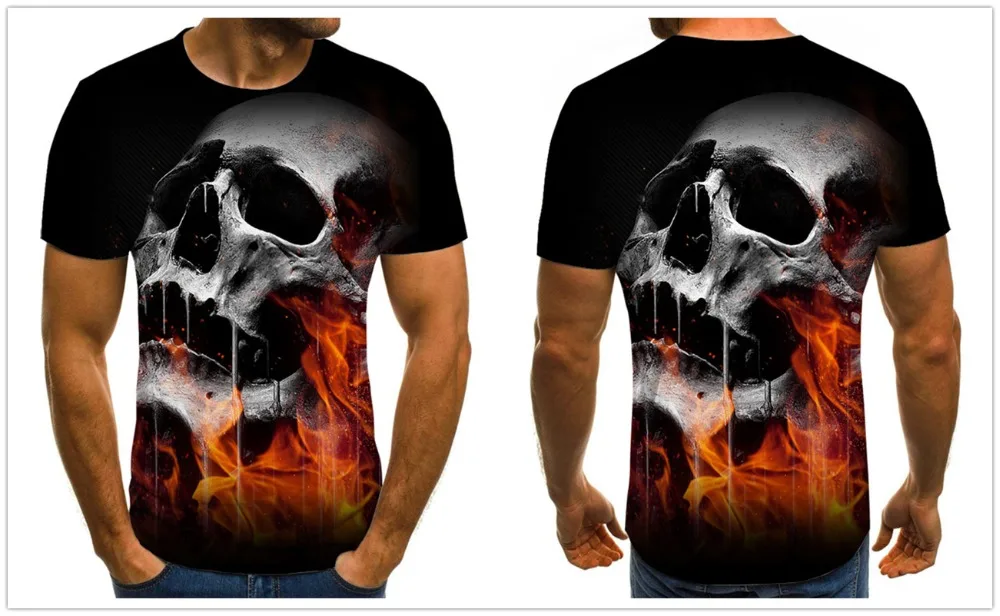 Футболка мужская с 3D-принтом черепа, модная тенниска с короткими р...