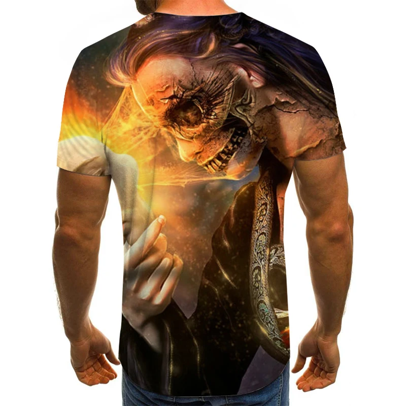Мужская футболка с принтом черепа и ужасов, повседневный модный топ...