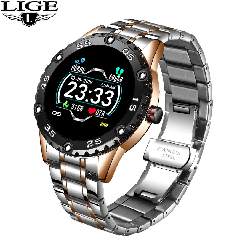 Смарт-часы LIGE мужские, водонепроницаемые, с браслетом из нержавею...