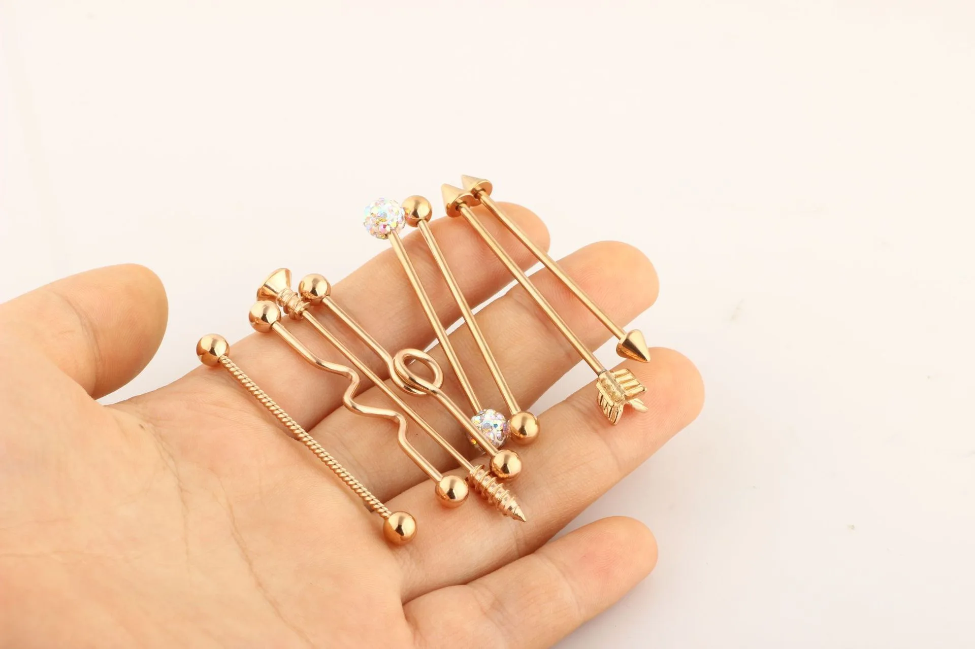 Название 】: Промышленная Штанга.【Размер 】: каменный шар 6 мм, шар 5 мм. Диаметр 1,2*38 мм. Остальные все 1,6*38 мм.[Материал]: нержавеющая сталь.【Вес】: один набор около 13 г. Один шт. Около 2 г.【Цвет 】: серебро, золото, роза, Радуга【Упаковка 】: пакет 0pp.【Преимущество 】: не вызывает аллергии, не ржавеет, не выцветает.