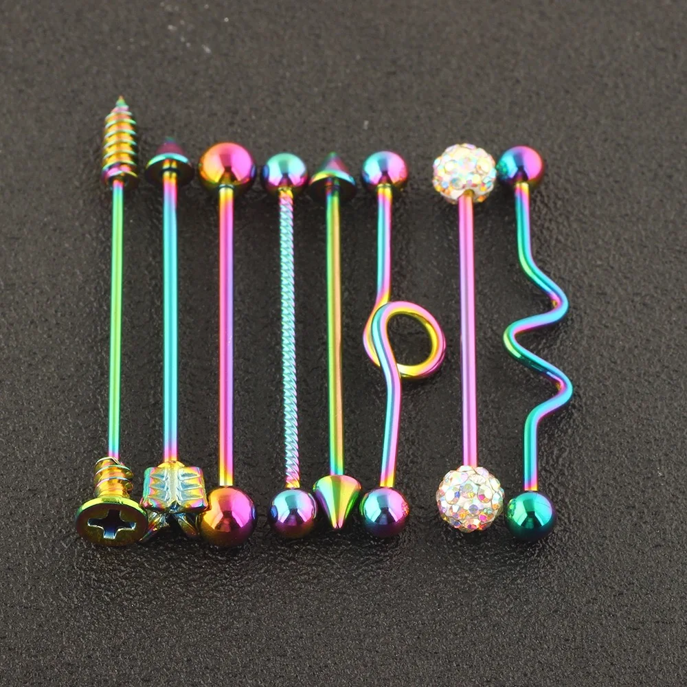 8 шт.компл. промышленный серьги-гантели конус, Радужный, панк, ушной хрящ Хеликс, пирсинг, ювелирные изделия, промышленный пирсинг