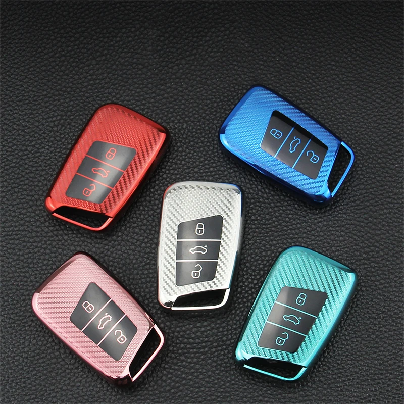 ТПУ чехол для автомобильного ключа из углеродного волокна, полное покрытие для Volkswagen VW Tiguan MK2 Magotan Passat B8 CC 2017 2018 для Skoda Superb A7