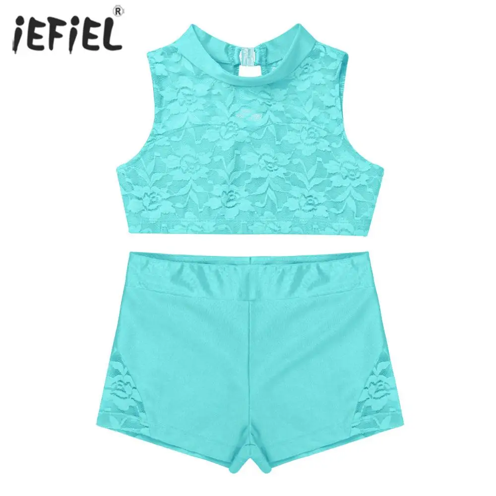 Комплект одежды для девочек с цветочным кружевом, балетный танцевальный спортивный костюм для детей, летний модный однотонный топ без рукавов и штаны