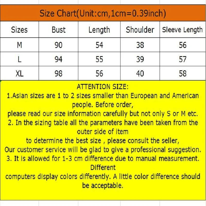 Внимание Размер: 1.Азиатские размеры на 1-2 размера меньше европейских и американских.Перед заказом, Пожалуйста, внимательно прочитайте нашу информацию о размерах, но не только S или M и т. д. 2: в таблице размеров все параметры были взяты с внешней стороны изделия Чтобы определить лучший размер, пожалуйста, обратитесь к продавцу, Наша служба поддержки клиентов будет рада предоставить профессиональное предложение. 3: допускается разница в 1-3 см из-за ручного измерения. Компьютеры отображают цвета по-разному. Возможна небольшая разница в цвете.