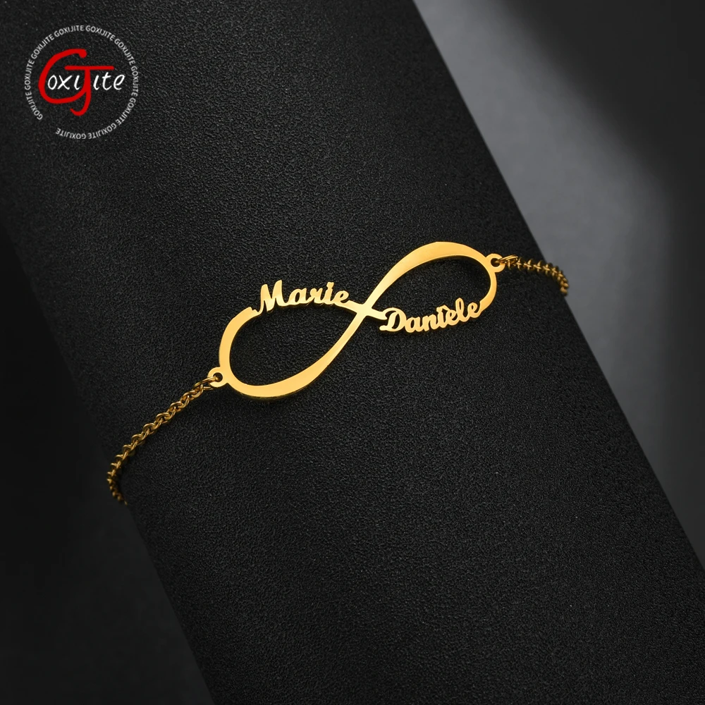Браслет со знаком бесконечности Goxijite из нержавеющей стали с именем на заказ для женщин