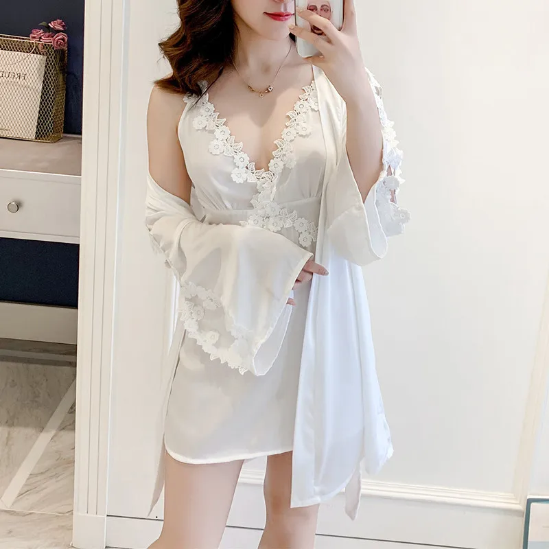 Пикантный пижамный комплект из 2 предметов, женская ночная рубашка с v-образным вырезом, пижама, домашняя пижама, ночное белье, весенний кружевной халат, ночная рубашка