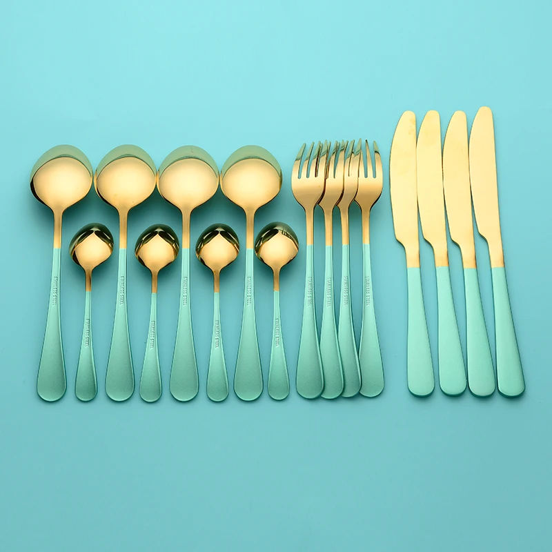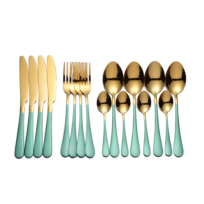 Набор столовых приборов из нержавеющей стали, 16 шт., набор золотых...