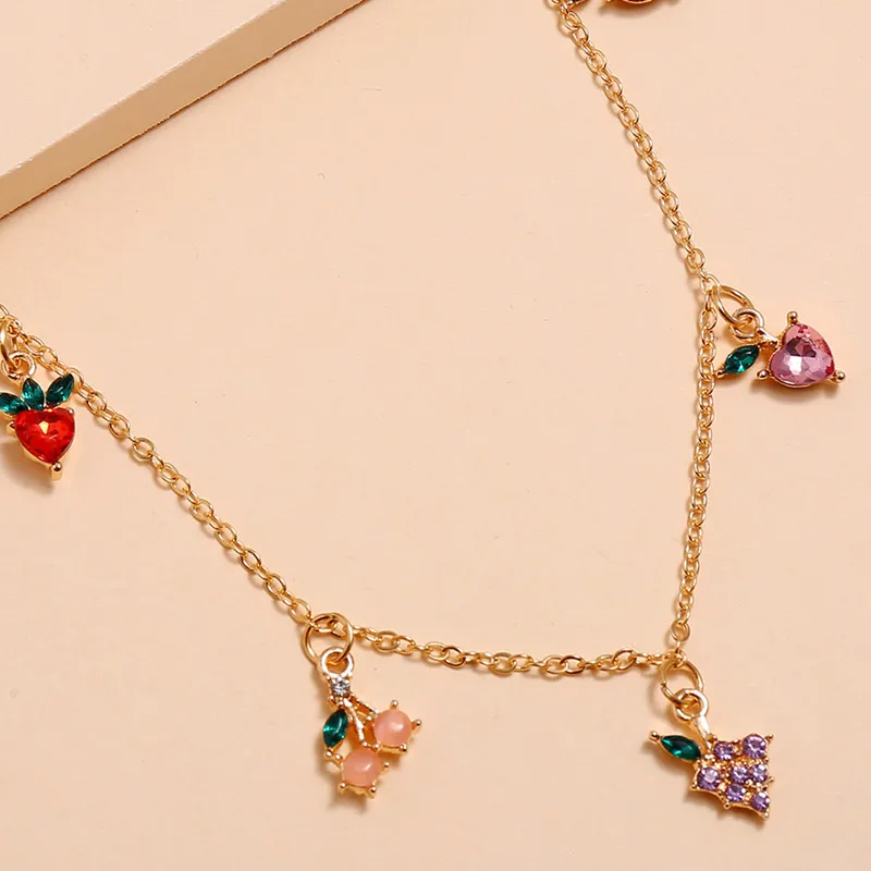 Милая Женская мода Кристалл Яблоко Вишня Виноград ожерелье фрукты Изысканная золотая цепочка Ожерелье Ювелирные изделия Подарки