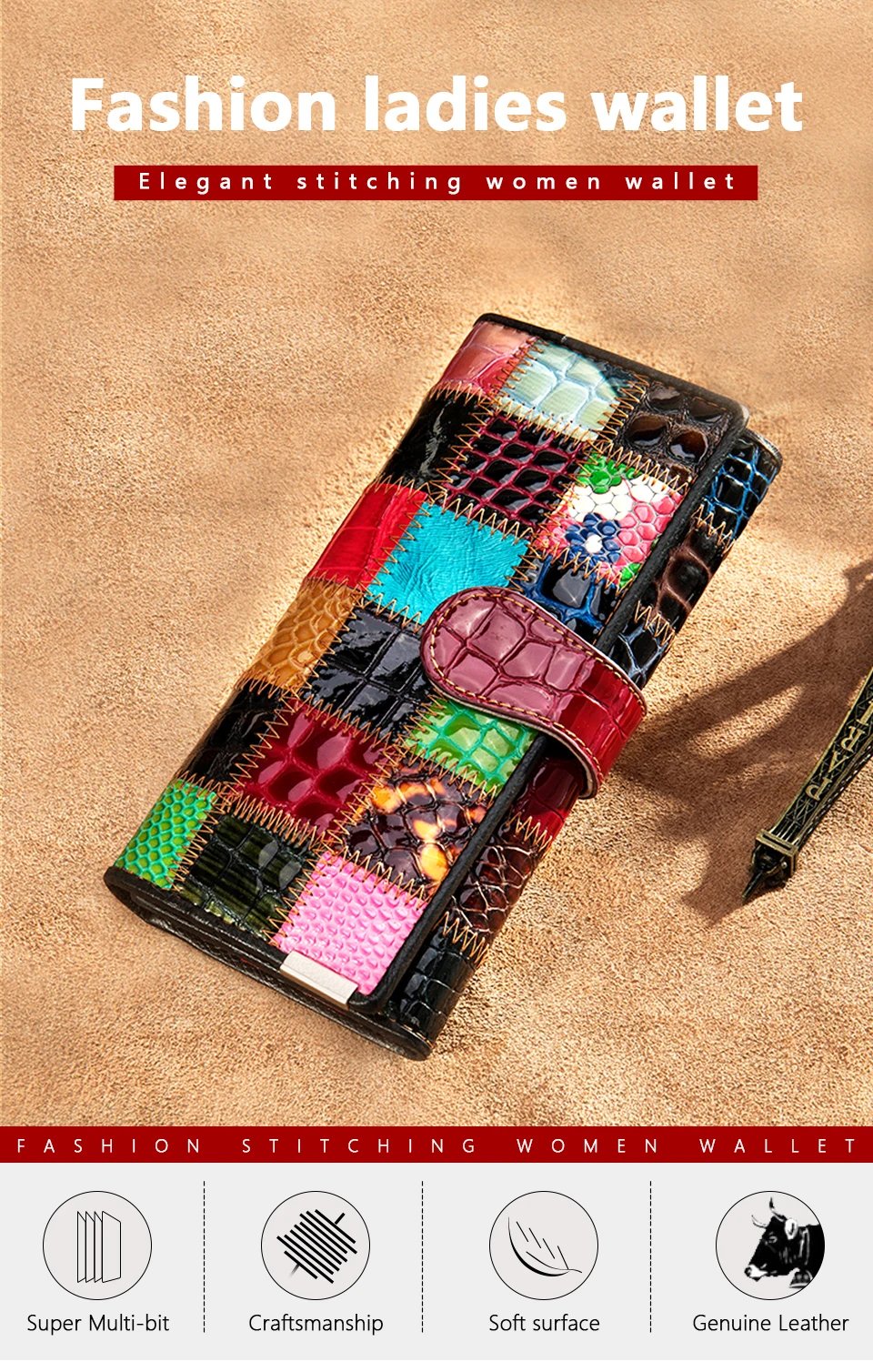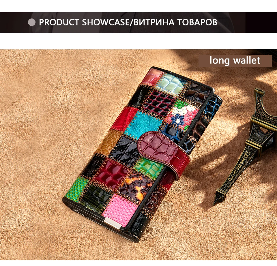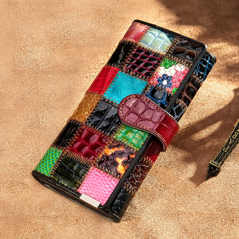 Модные женские бумажники, длинные лоскутные кошельки из лакированно...