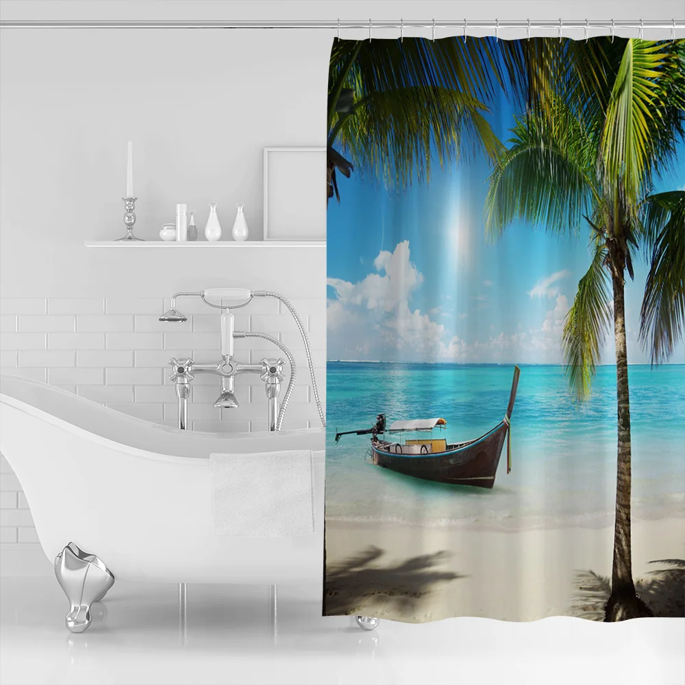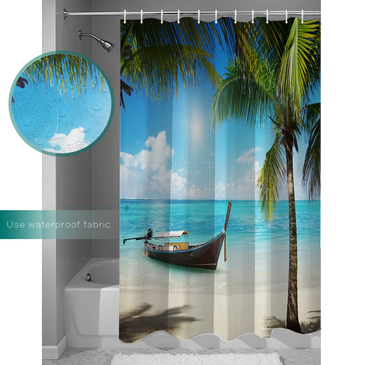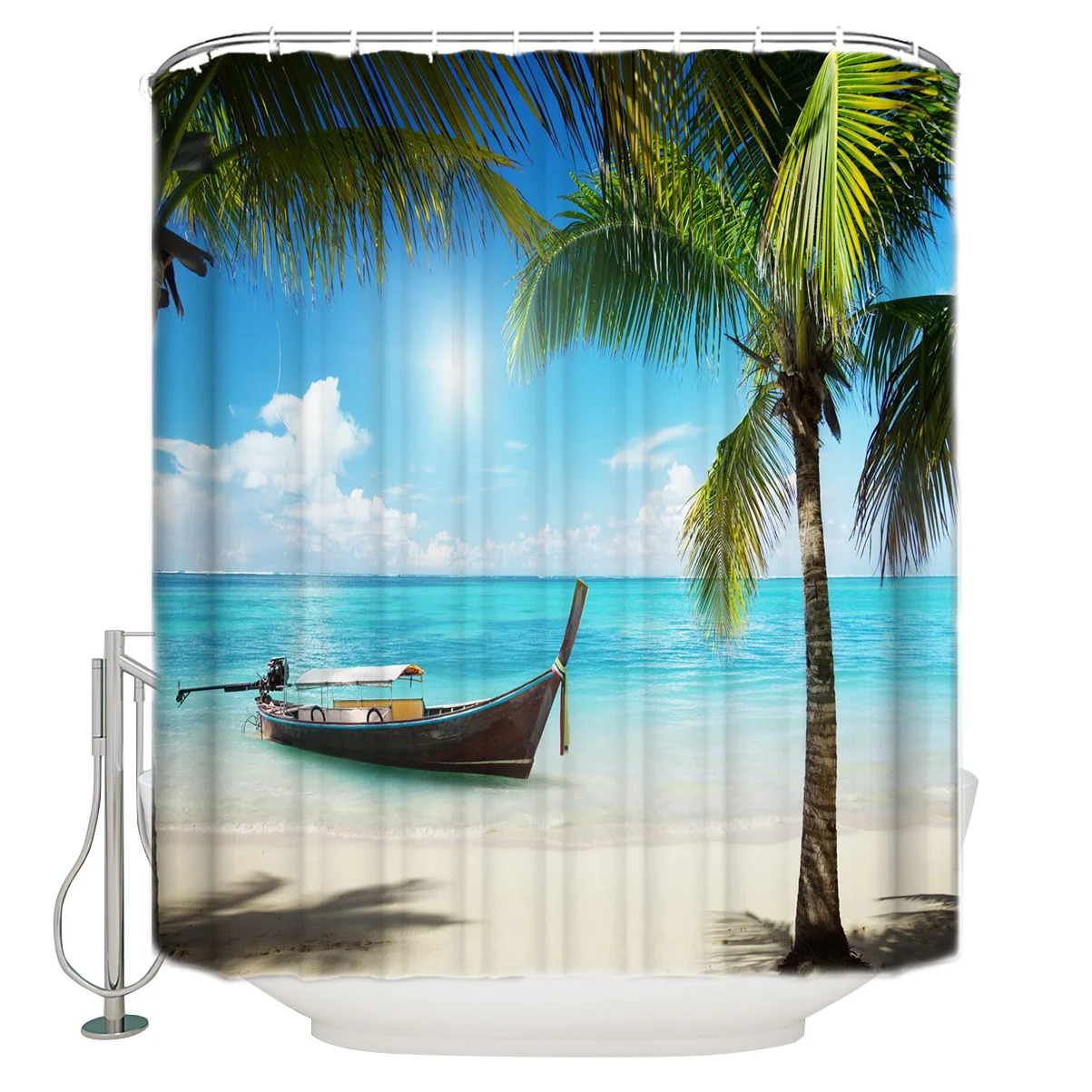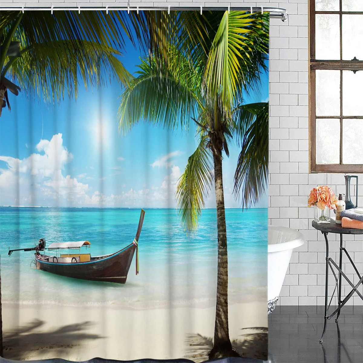Современные занавески для душа, пляжные занавески на кокосовое дерево, водонепроницаемые занавески из полиэстера для украшения дома, занавески для ванной комнаты с крючком