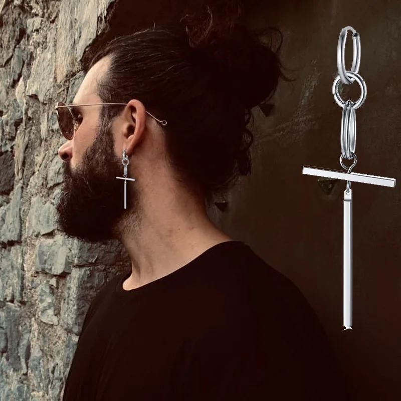 Мужские Круглые длинные поперечные прямоугольные серьги из нержавеющей стали сережки-палочки унисекс ювелирные изделия