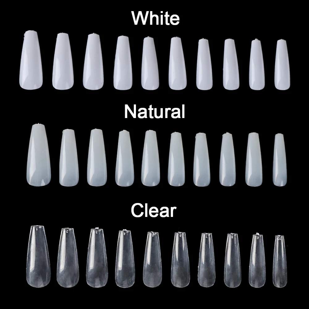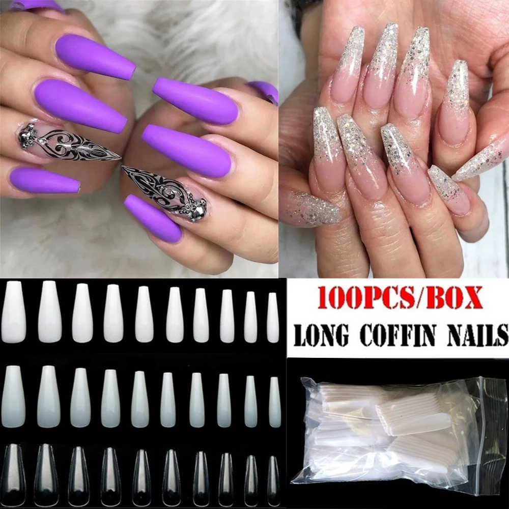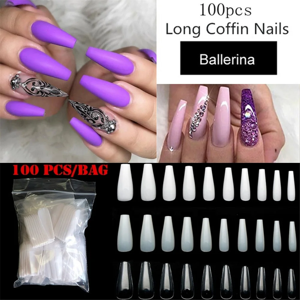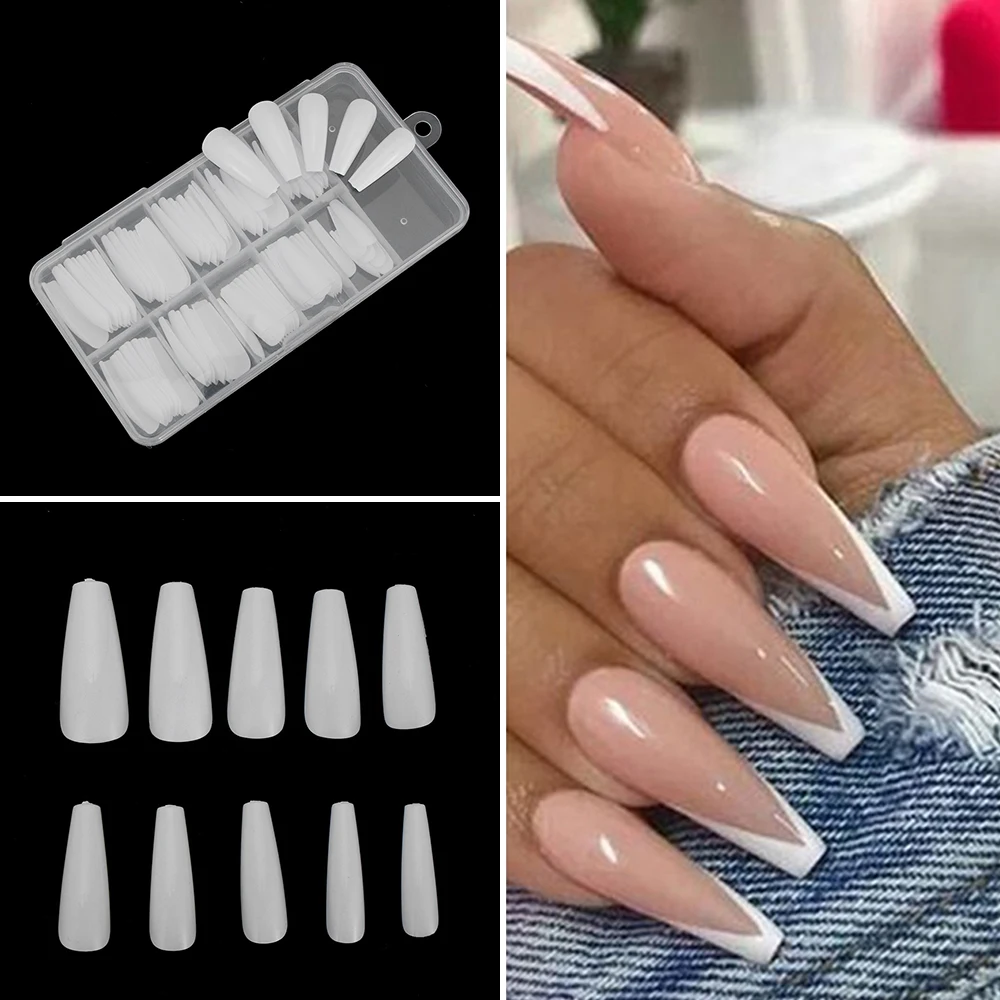 100 шт.компл. накладные ногти с полным покрытием, акриловые искусственные ногти с длинными гвоздиками, яркиенатуральныебелые ногти