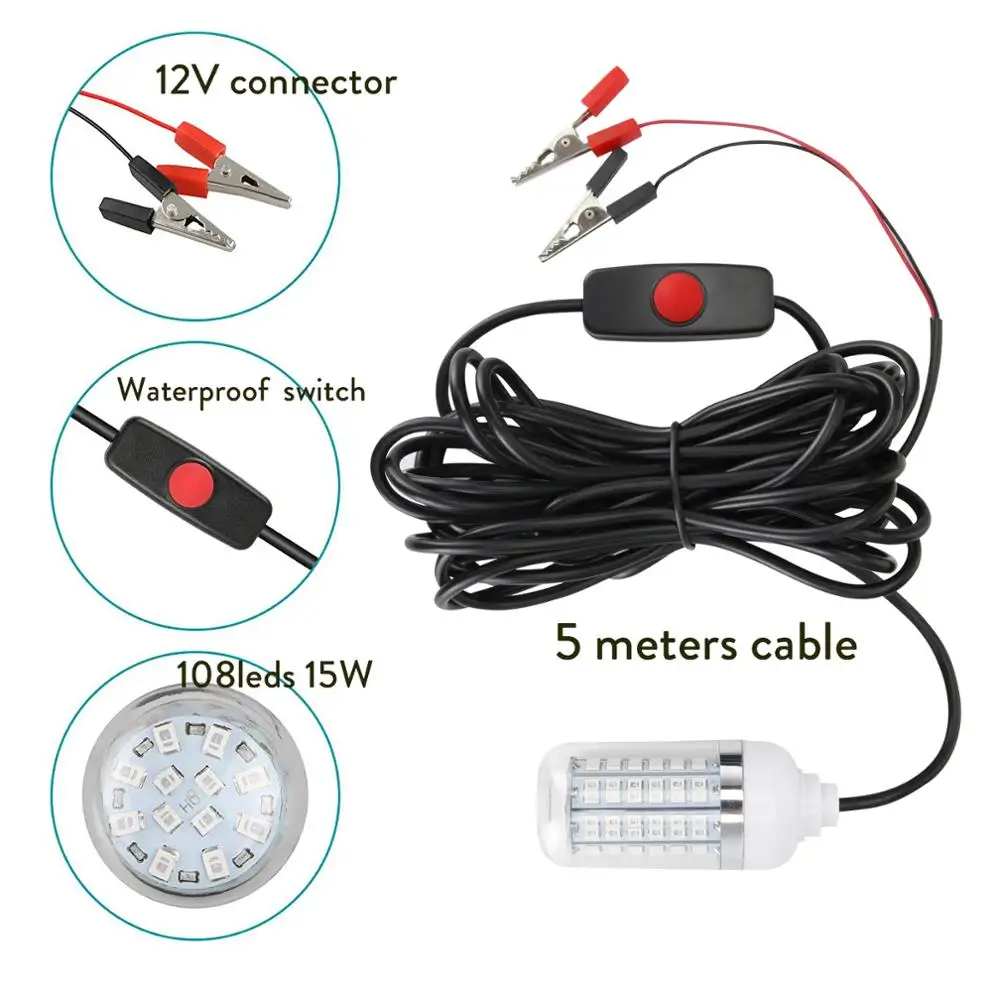 Светодиодный ная Водонепроницаемая подводная лампа, 12 В, для погружной ночной рыбалки, лодки, уличное освещение, белый зеленый синий 108, 126 светодиодный светильник s
