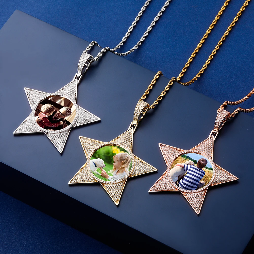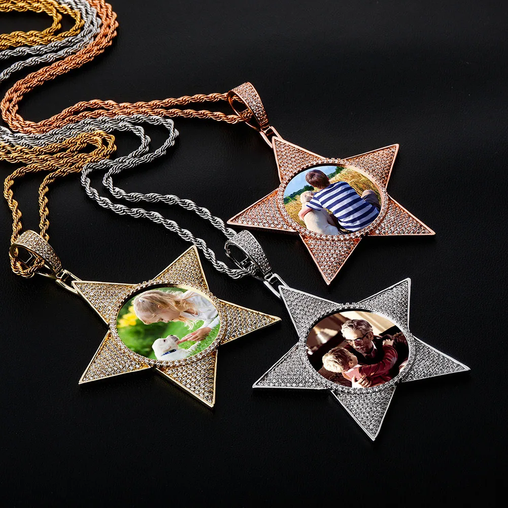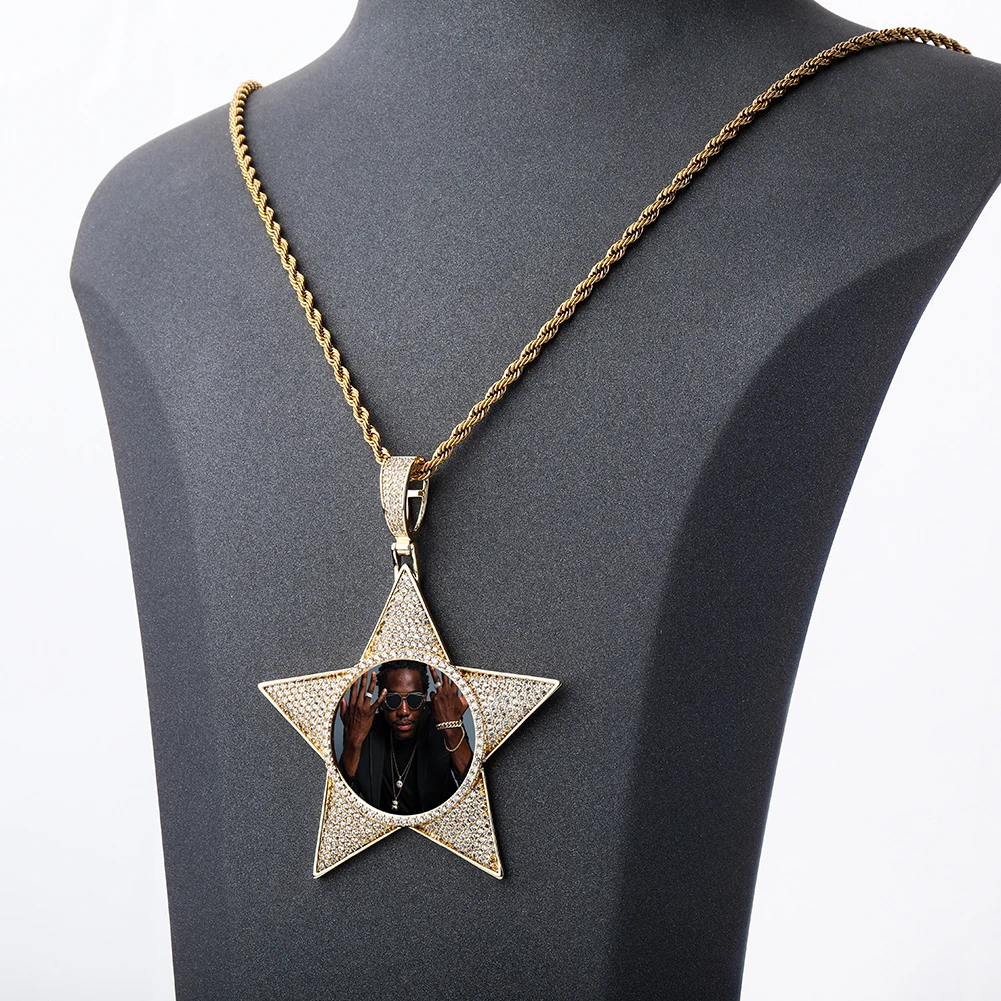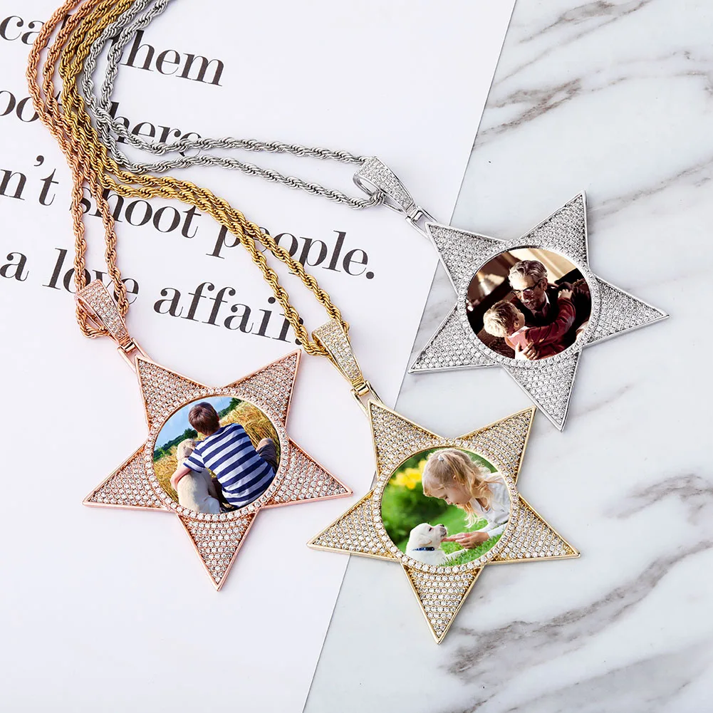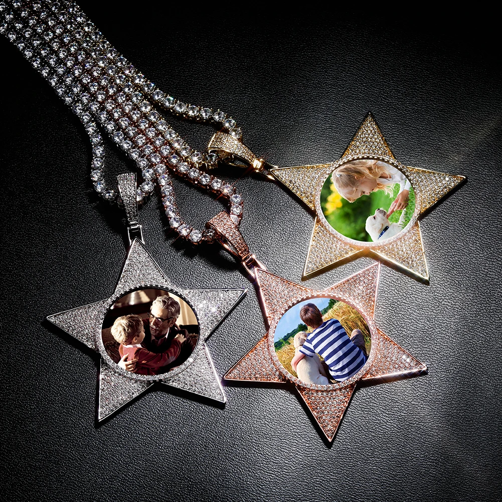 TOPGRILLZ пользовательские фото пентаграмма медаль кулон циркониевый в виде льда кулон Мужская хип-хоп мода ювелирные изделия