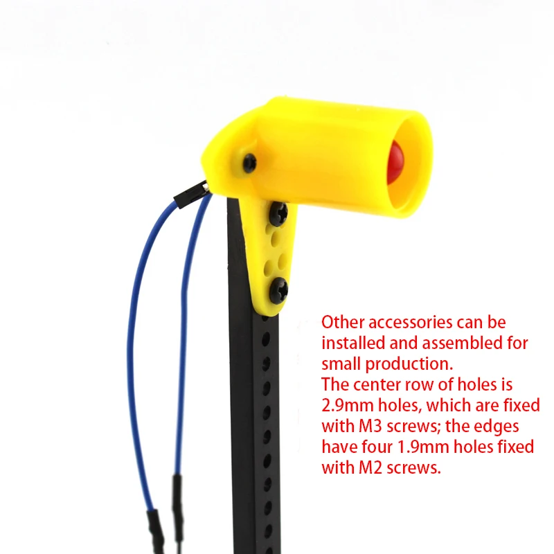 Этот продукт используется для сборки конструкции, потому что небольшое отверстие предназначено для винтовой сборки, поэтому его нельзя использовать непосредственно в качестве кронштейна вала. Однако другие аксессуары могут быть установлены на его поверхности, чтобы сделать пьедестал. [Длина]: 50, 100, 120 (T тип головки), 150 мм [поперечное сечение]: 10 мм * 5 мм [диафрагма]: Центр строки-это 2,9 мм отверстие, фиксированный с M3 винты; Края состоит из четырех 1,9 мм отверстия, фиксированный с M2 винты. [Расстояние отверстия]: 5 мм 【материал: пластик