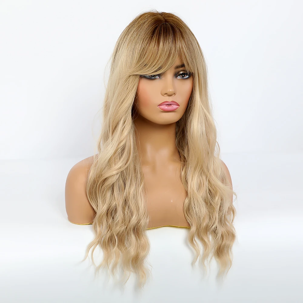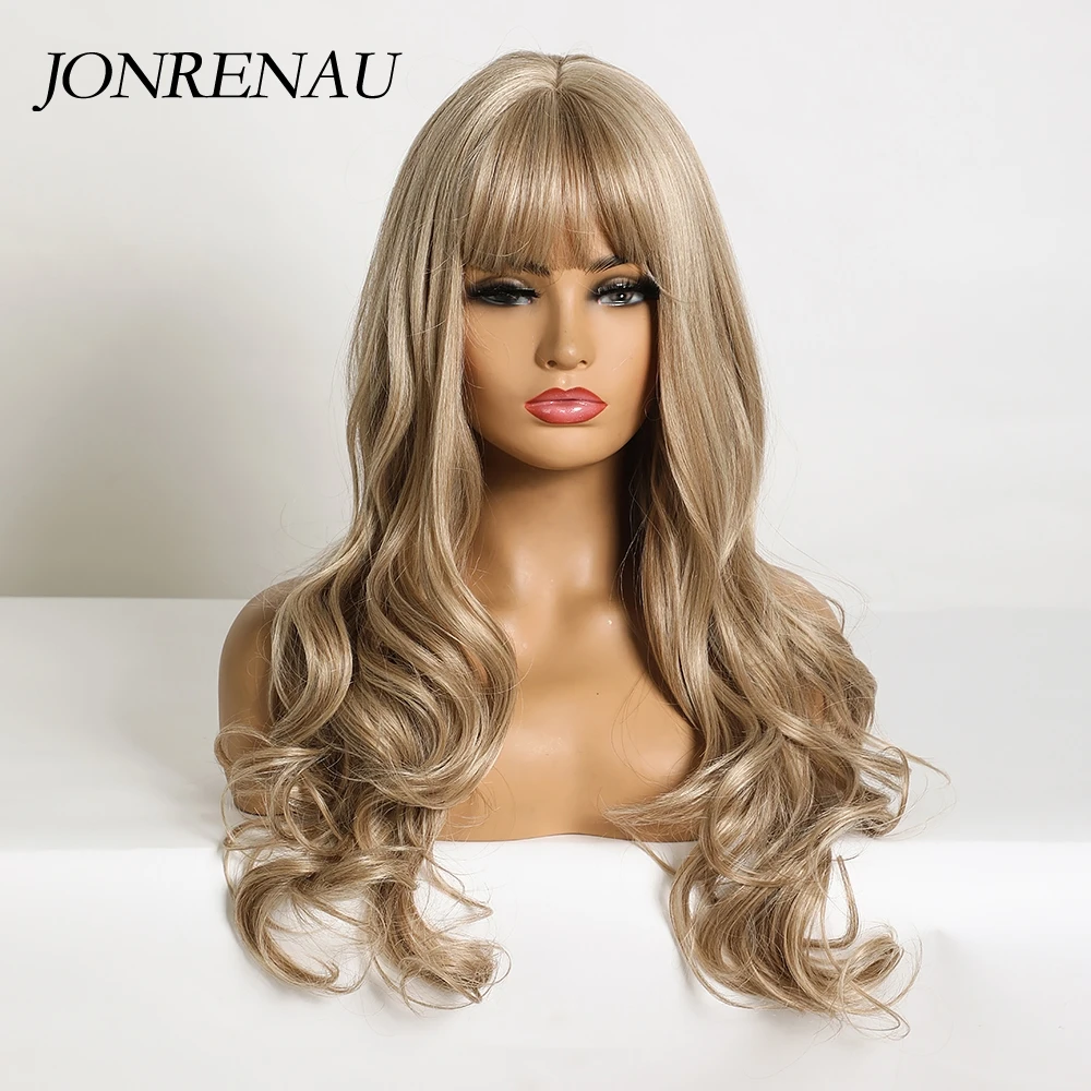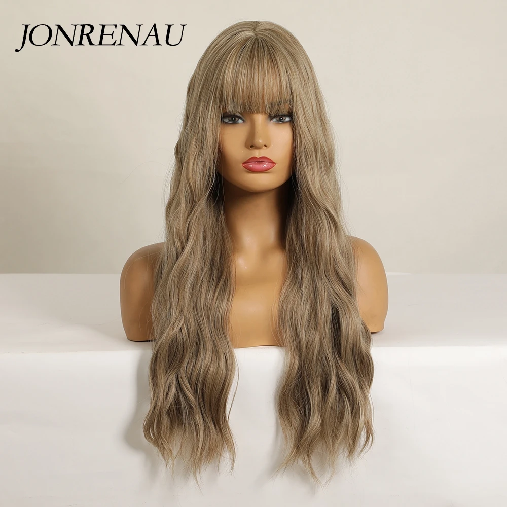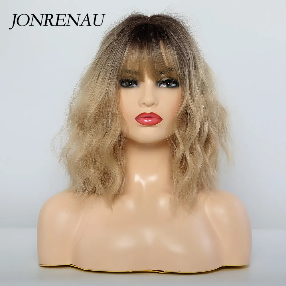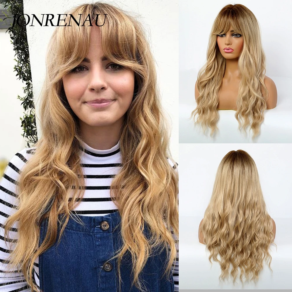 Синтетические парики JONRENAU с эффектом деграде, темные корни, светлый цвет, средняя длина, волнистые волосы, парики с челкой для белых и черных женщин