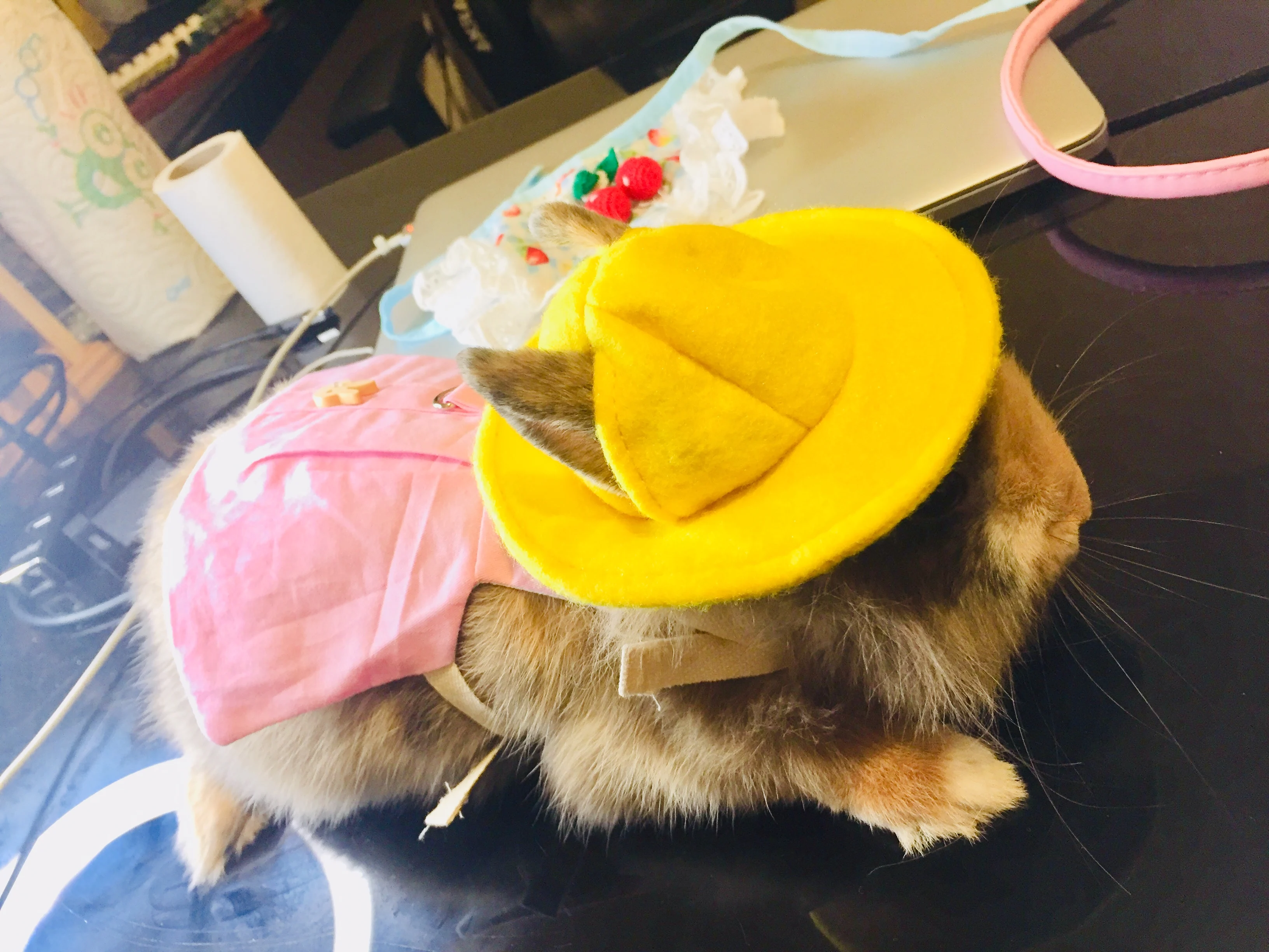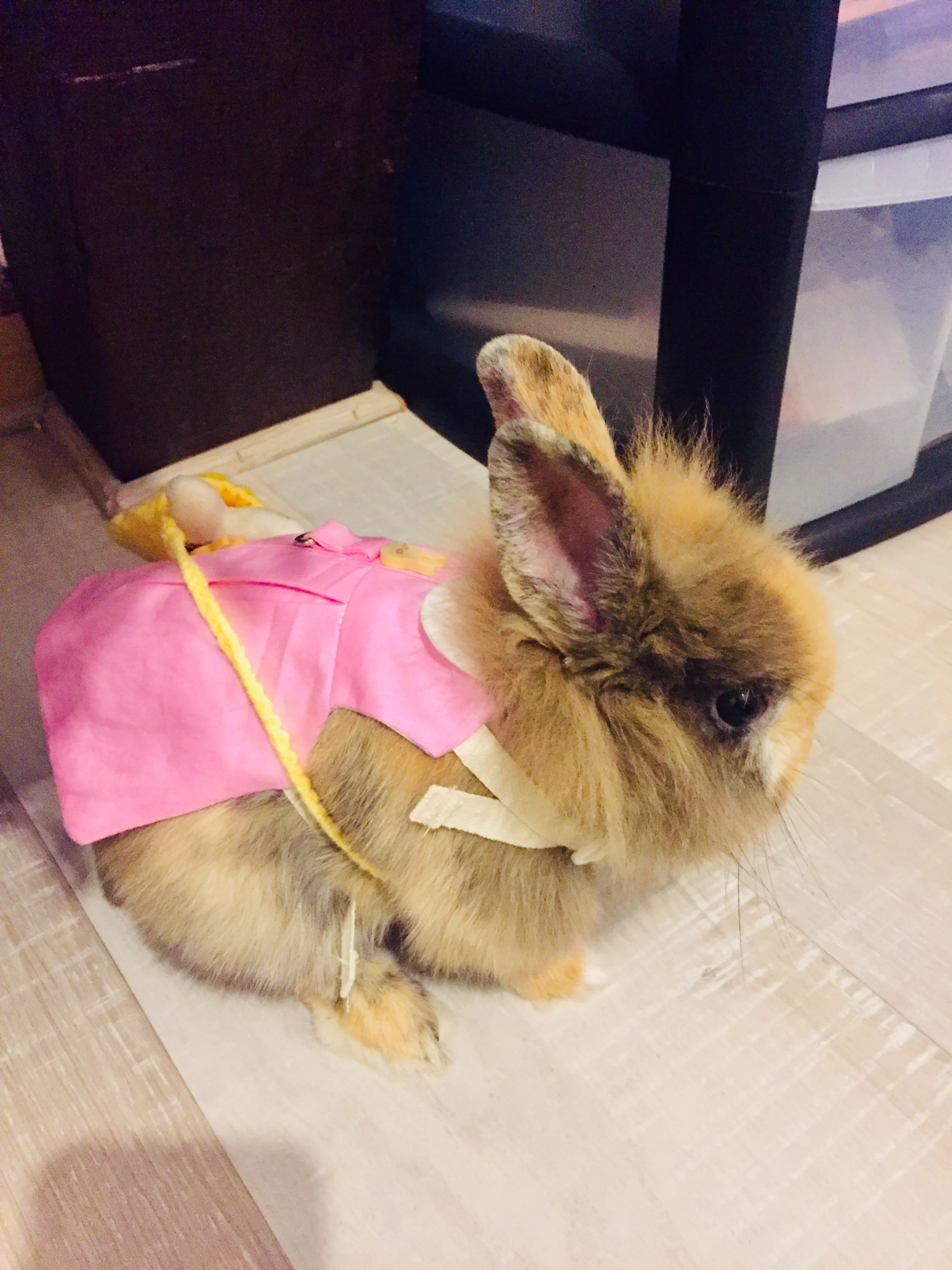 Просто чудесный костюм! Купила S для взрослой морской свинки. На шапочке есть прорези для ушек, брошь зайчик на булавочке. Оооочень мило
