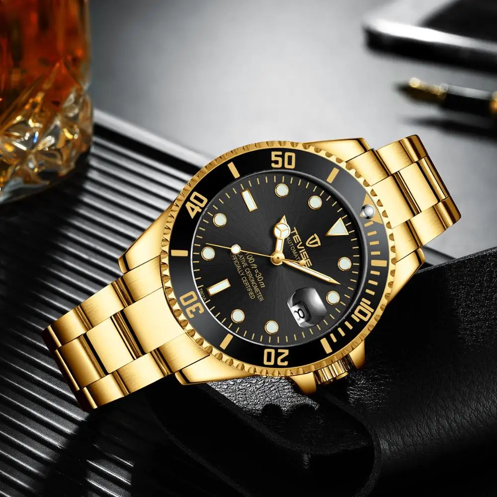 Часы наручные TEVISE Мужские механические Автоматические, роскошные брендовые водонепроницаемые в стиле милитари, с календарем, датой, для дайвинга