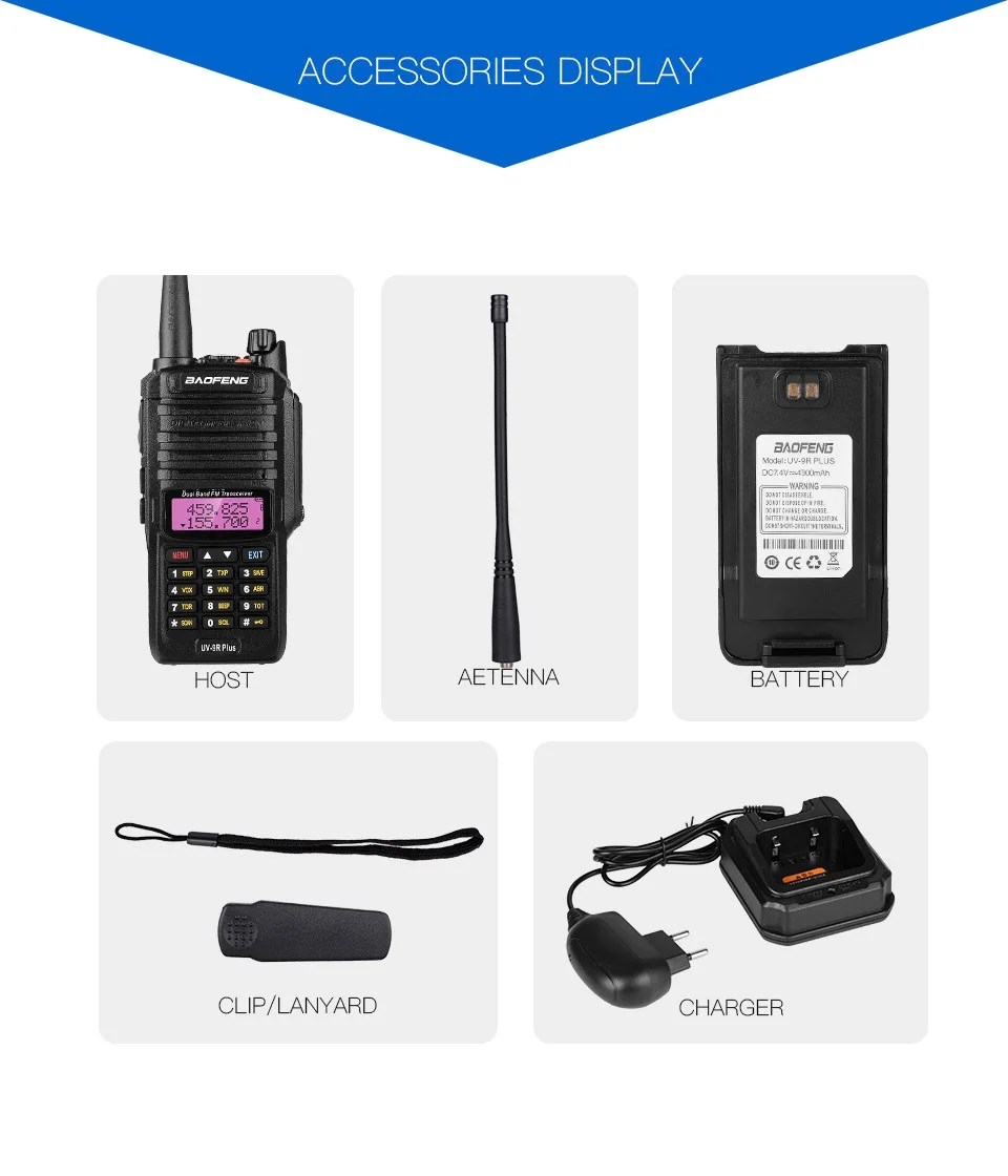 Рация Baofeng UV-9R Plus, водонепроницаемая, IP67, 10 Вт, мощный радиоприемник CB, Ham UV 9R, портативная двухсторонняя радиостанция для охоты, 2020