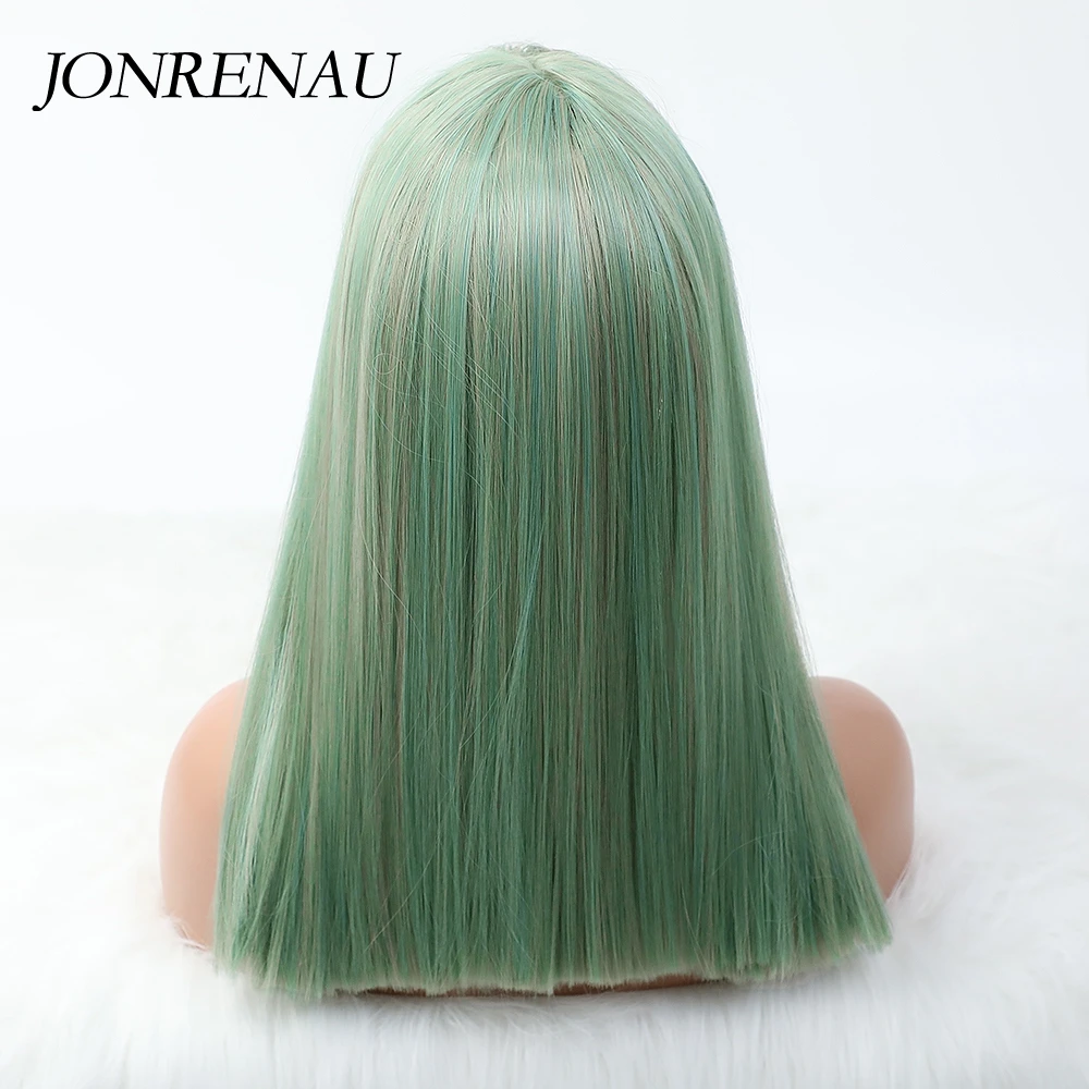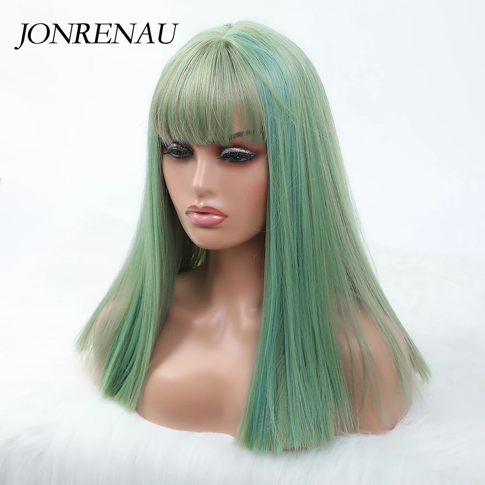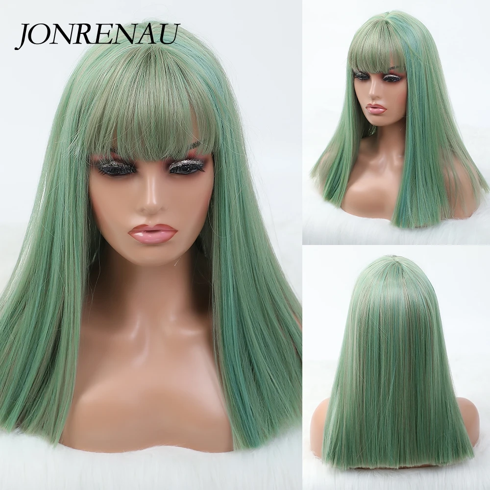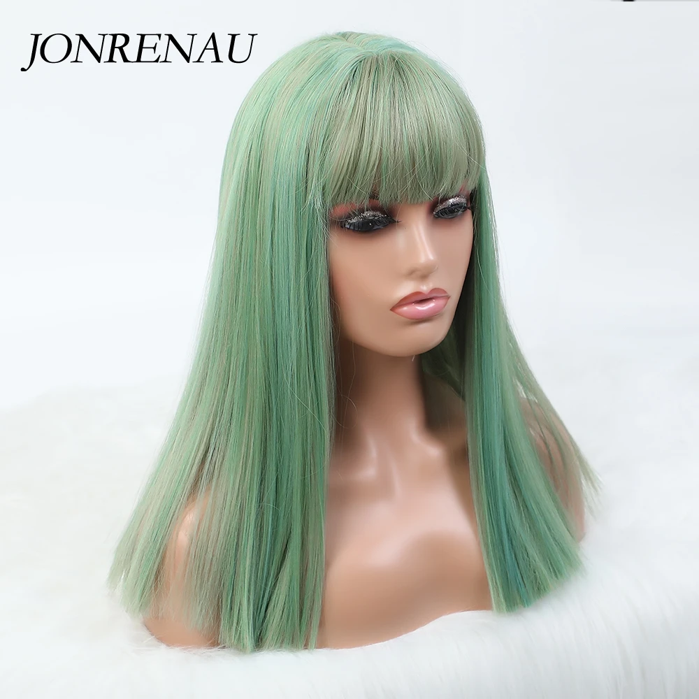 Парики из синтетических волос Jonrenau зеленого цвета с челкой для женщин термостойкие парики для косплея парики для волос средней длины