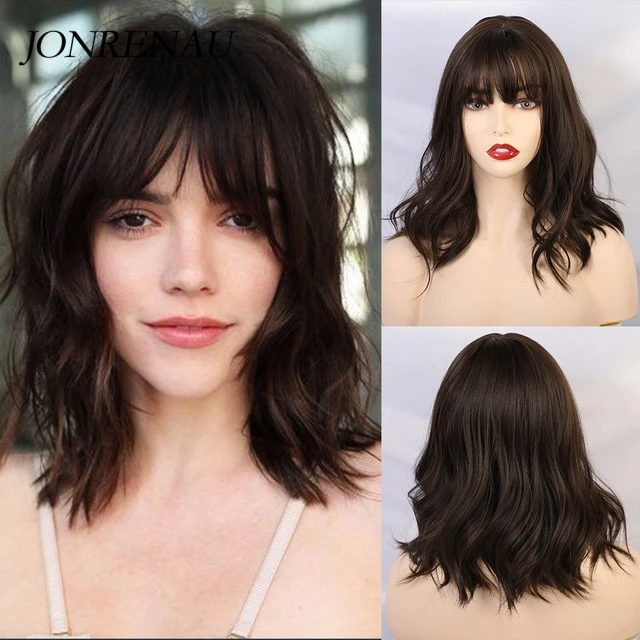 Женский парик с челкой Jonrenau, темно-коричневый парик из синтетич...