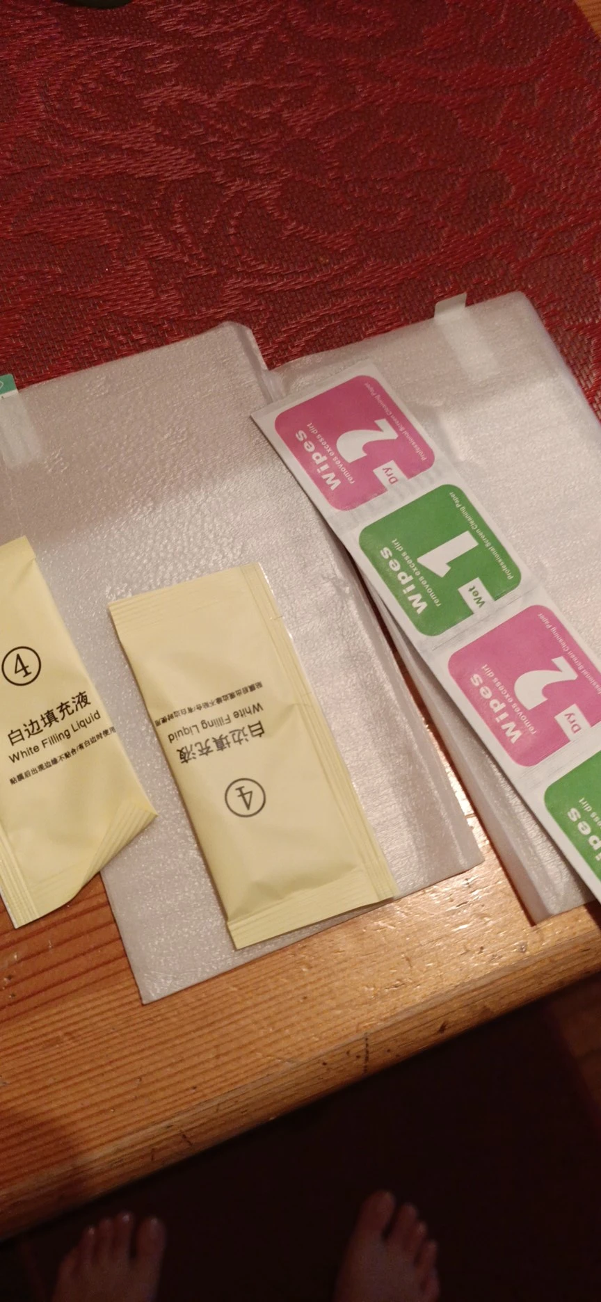 брал два штуки. всё норм. в комплекте. два флакона с жижей для заполнения пустот по краям. о. .......,......................................................