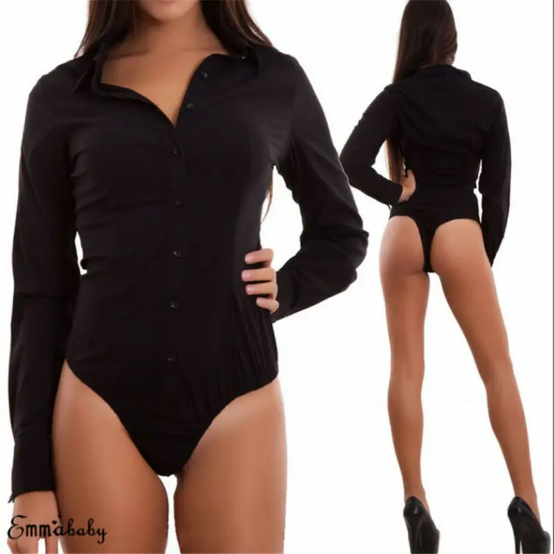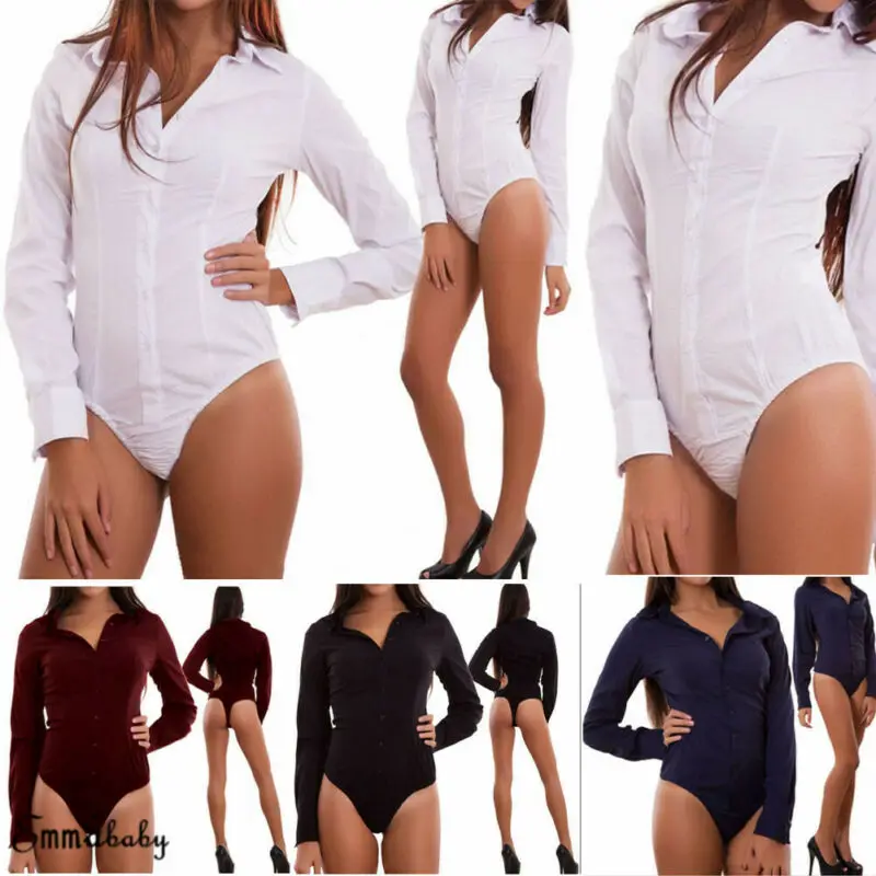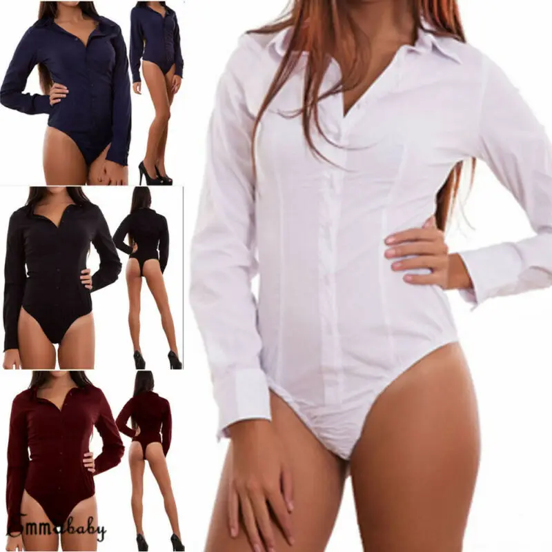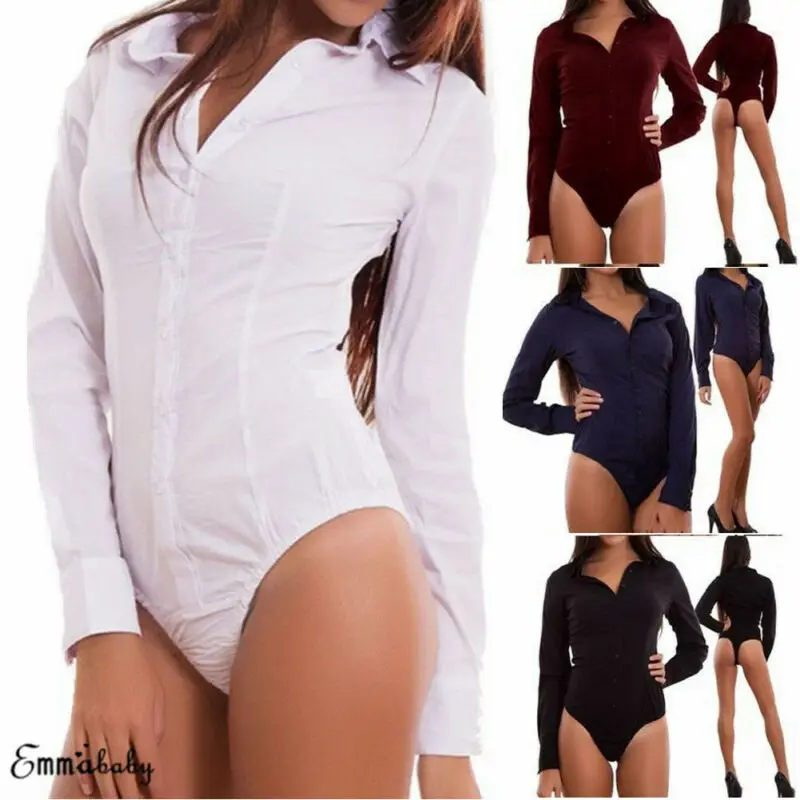 Новинка 2020, Женский Повседневный комбинезон с V-образным вырезом и длинным рукавом, обтягивающее на пуговицах, топы, блузка, боди